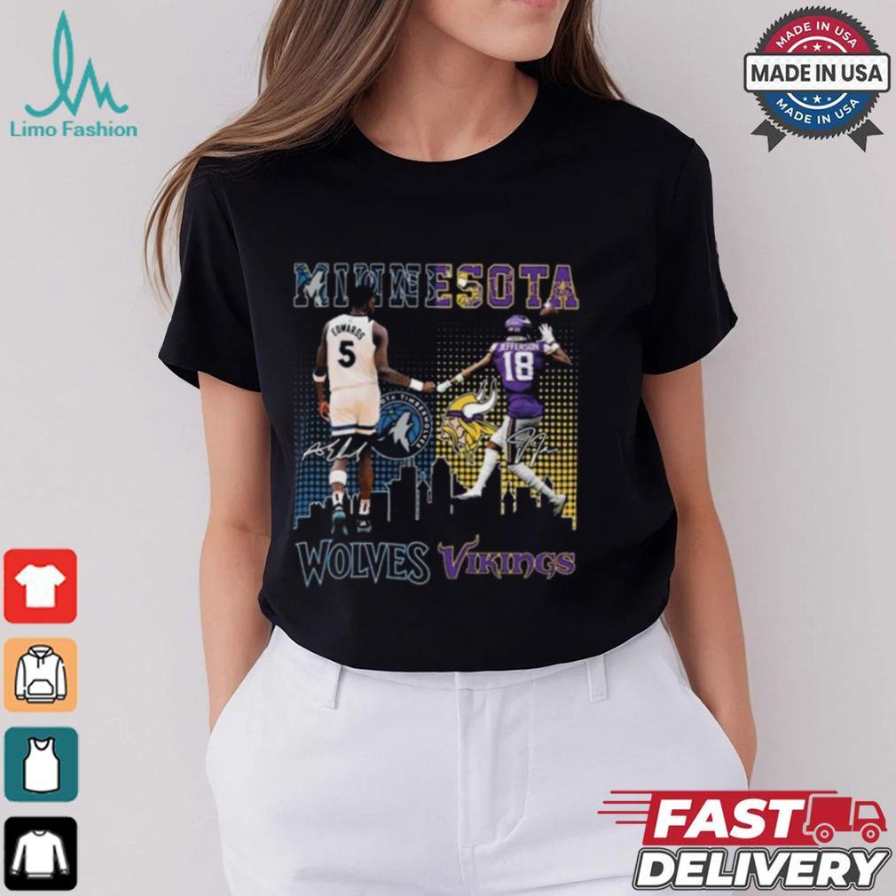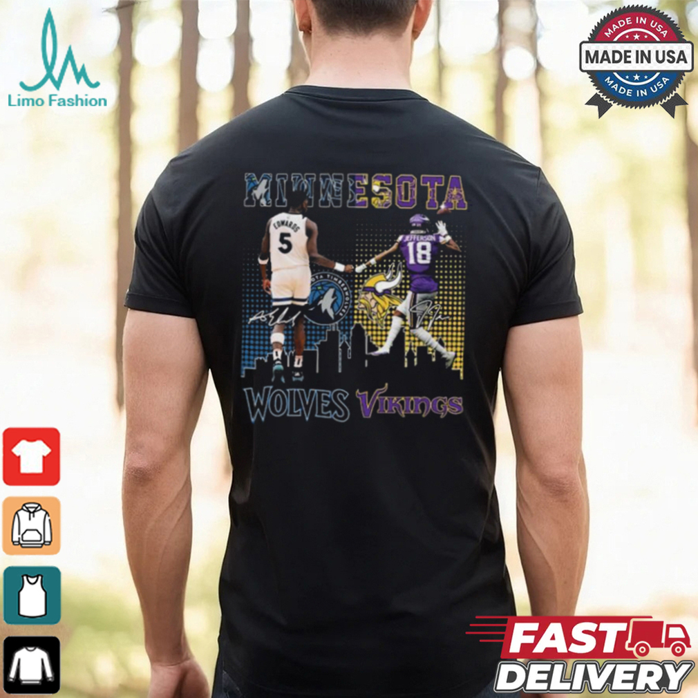 Original Minnesota Wolves Edwards Wolves x Minnesota Vikings Jefferson Signatures Shirt