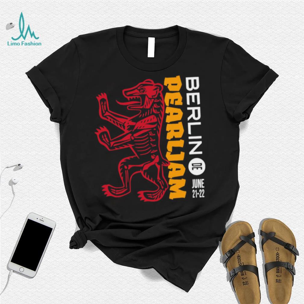 Delores, at ten weeks old, was quickly getting integrated into the Original pearl Jam Berlin Event shirt of the flock. Because these six little chicks started out in an aquarium with a heat lamp in my study, then moved to a large hamster cage, then finally outside in a cage kept inside the barn, the grown chickens had all slowly acclimated to seeing Delores and his sisters. However, the first few times I put the babies in the open with the hens, I cautiously supervised the meeting. There was blustering and a little pushing by the big chickens – similar to what you might see on a junior high playground the first week of school – but nothing too severe. Once when the largest hen, Joan Crawford, pulled at Delores’s tail, he ran to me and flew into my arms – but when I scolded Joan and she stalked off to pout, Delores was brave enough to go back and try again. The pecking order shook out fairly easily within a couple days, with Delores towards the middle.