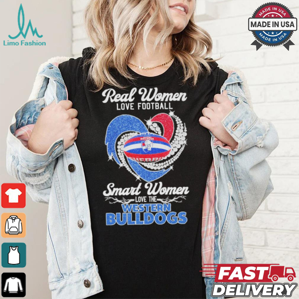 At that point I had a steady girl-friend, but also a Original Real women love football smart women love the Western Bulldogs 2024 shirt good friend Robin. I was suppose to meet my girl-friend on Christmas Eve, but around 7:00 PM my friend Robin calls me up and tells me her mom has been bummed about about Christmas and there are no decorations at their home. She asked me, “Will you go get a Christmas tree with me?” That put me in a real dilemma with my girl-friend, but sometimes you have to do the right thing…so I called my girl-friend and told her what I had to do, she was cool. My friend Robin had lost her father when she was very young, and her mother never remarried her entire life. I sort of knew why because one day while over Robin’s house, she had a box of letters that her dad had written to her mom while he was a soldier, and we read them together…very old letters, but expressed who he was.