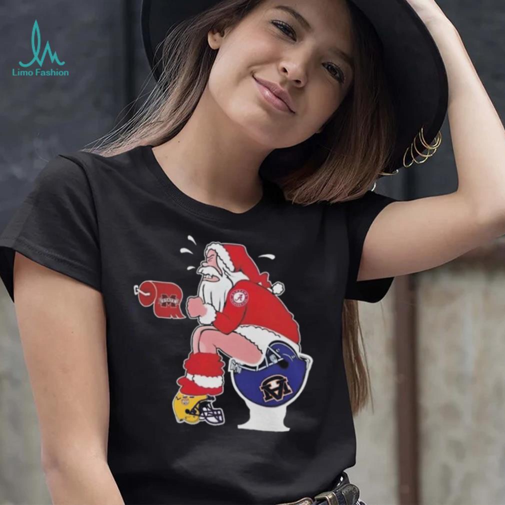So not only did they actually have their homes both have Hanukkah and Christmas decorations, but these very different families they happily and joyously hosted celebrations for Original Santa Alabama Crimson Tide Make Shit Auburn Tigers Mississippi State And LSU Tigers Helmets Christmas T Shirt. What’s key here though is that what is meant by “Christmas.” Many people associate this holiday as a traditional Christian-themed, religious holiday with various Christian themes, decor, etc.. But many other people associate the holiday with snowmen, winter weather, reindeer, hot chocolate, egg nog (often with rum), various evergreen trees (artificial or real) festooned with glittering ornaments, pretty gift boxes under the tree, etc., or a secular (with Pagan roots in Saturnalia) winter holiday just a few days after the annual winter solstice. In fact, it seems to be a holiday that many non-Christians and even non-theists celebrate.