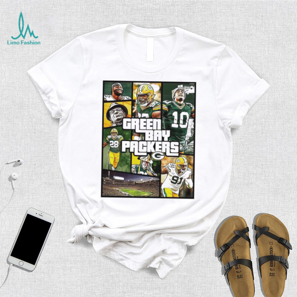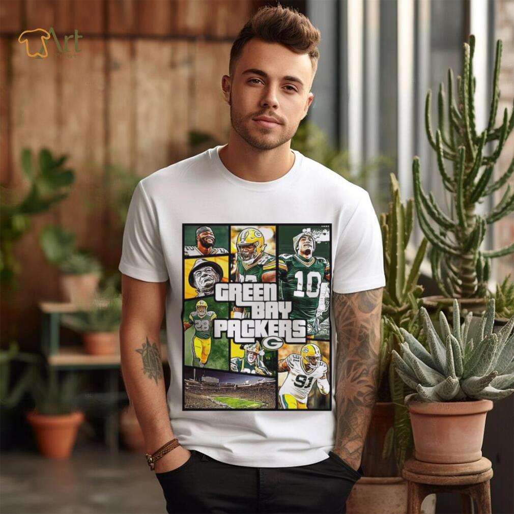 ()As you research you may find some major players are interesting. Go to youtube and Packers Green Bay Packers Grand Theft Auto shirt search the player’s name and add “interview” to the search so you can watch them answer questions and see if that is someone you want to follow and adopt their team.