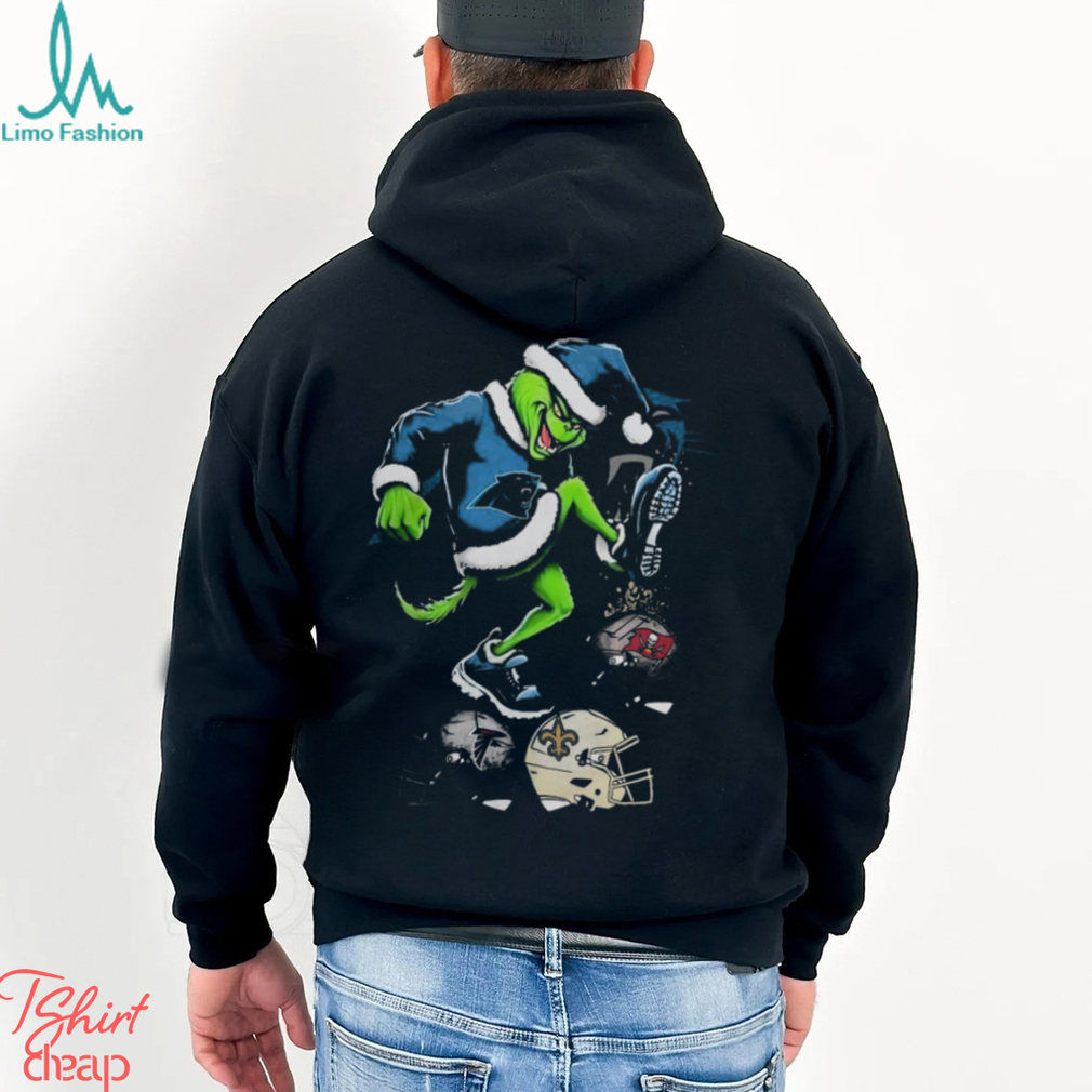 Panthers Shop The Grinch Carolina Panthers Stomp On NFL Teams Christmas T Shirt hoodie, tank top, sweater and long sleeve t-shirt