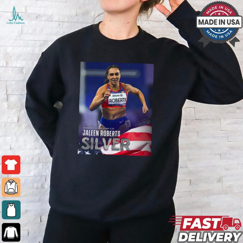 When the boys and Izumi tried to transmute a Paralympic Paris 2024 Poster Women’s Long Jump T37 Jaleen Roberts Silver Medal t shirt , they used the fundamental chemical building blocks of a person – iron, carbon, hydrogen yadda yadda. They would’ve been able to create a body using these. However, they didn’t give up anything (relatively speaking) for the soul – if you recall, the soul that was put into the body of those that they created likely wasn’t that of the person they were trying to resurrect due to the differences in the bodies that were created – the one that Ed and Al created was male, for example. Using this as an example, they must have created a soul, and because they didn’t have anything to give up to create the soul they gave up parts of themselves.