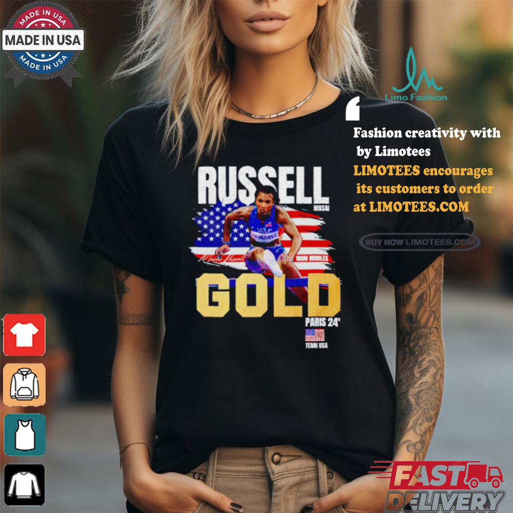 Hair is a part of Paris 2024 Masai Russell 100M hurdles Gold Medal shirt body – it grows out of them and remains attached to them. They’ve cut off a part of her body, and I can understand why she would feel extremely violated – especially because of the importance that society places on a girl’s hair, and how it’s closely associated with her femininity and identity as a girl. And, just in general, it feels so violating when somebody invades your personal space like that and takes something from you. I can understand how distraught your daughter must be, the poor thing.