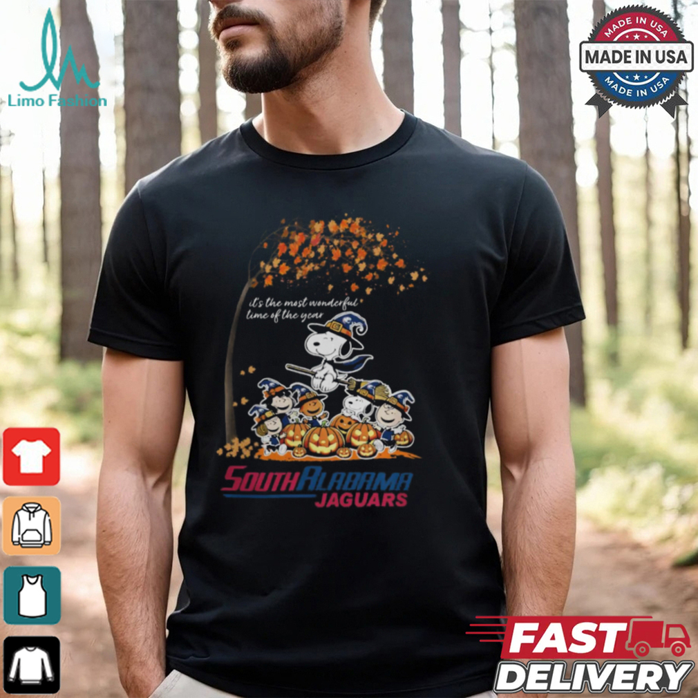 Peanuts Characters South Alabama Jaguars Halloweens It’s The Most Wonderful Time Of The Year Shirt hoodie, tank top, sweater and long sleeve t-shirt