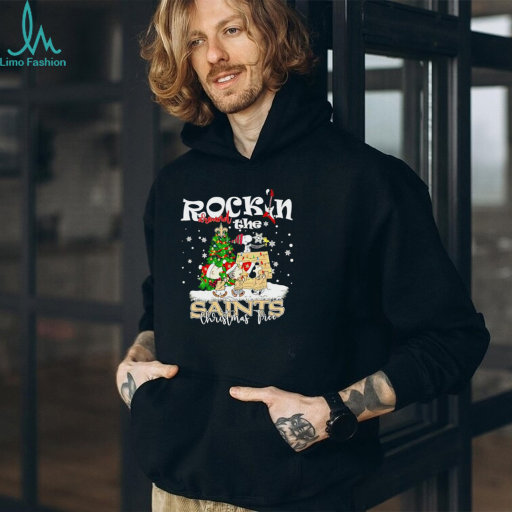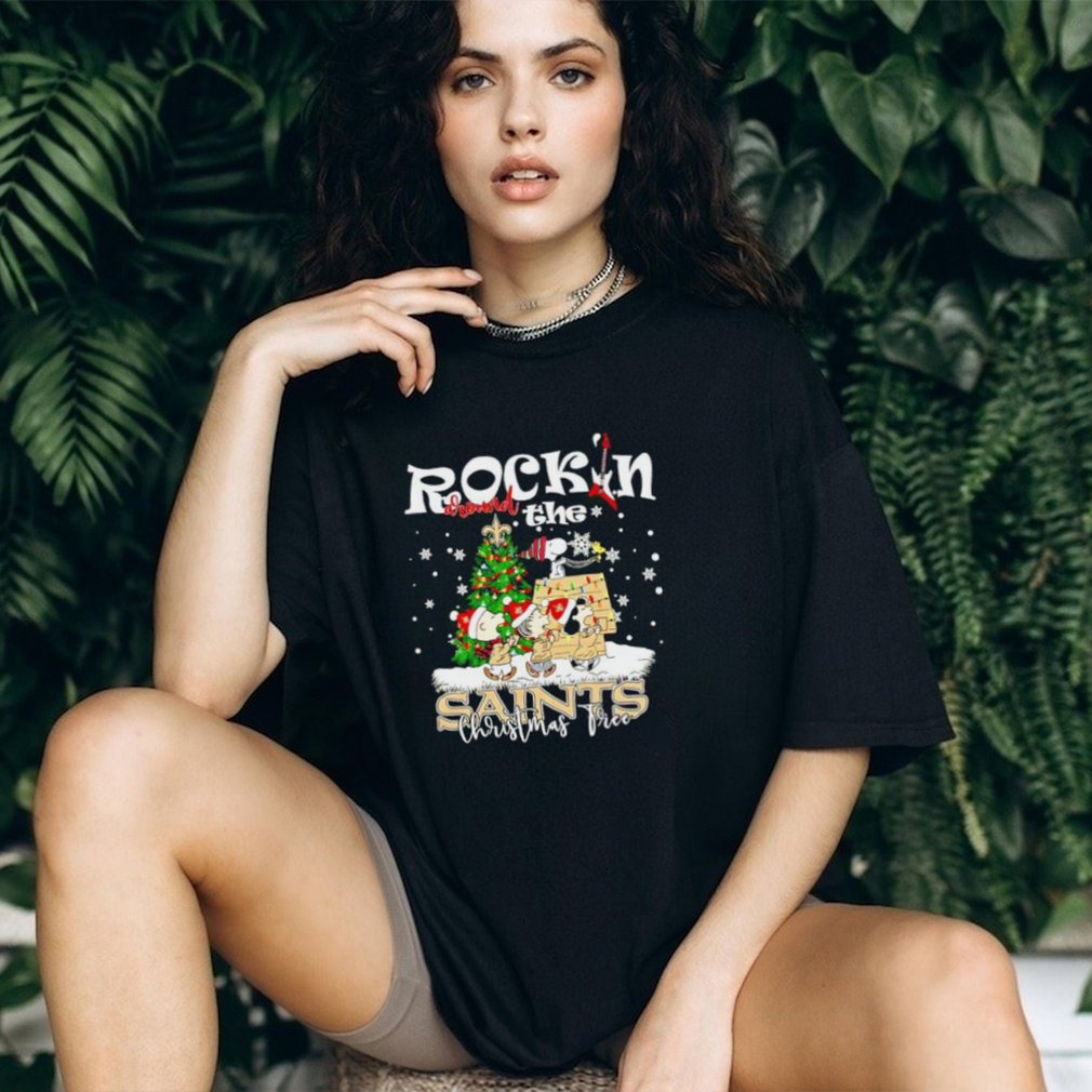 ()Peanuts NFL New Orleans Saints Rockin Around Christmas Tree shirt, Hoodie, Sweater, Vneck, Unisex and T-shirt