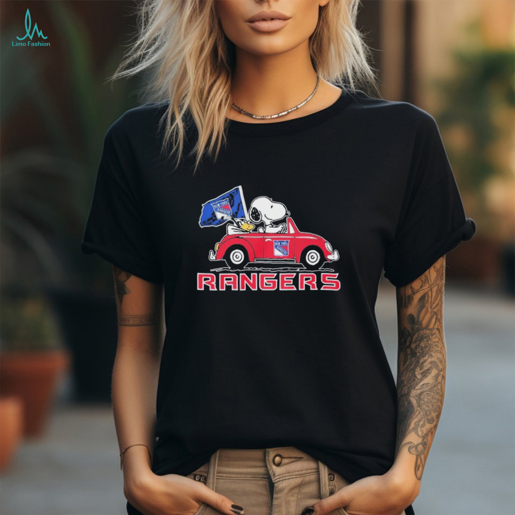 Peanuts Snoopy And Woodstock On Car New York Rangers Hockey Shirt