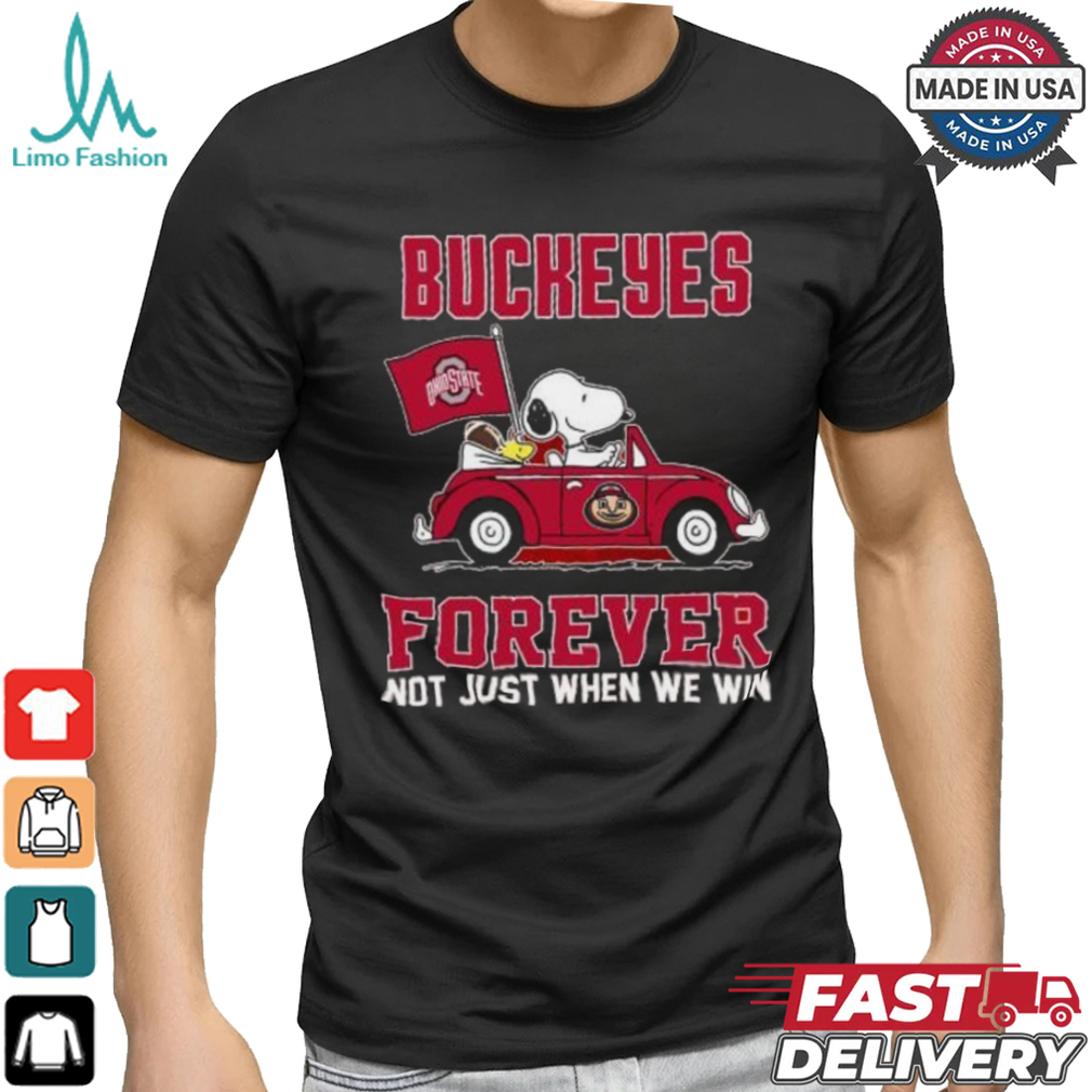 Peanuts Snoopy And Woodstock On Car Ohio State Buckeyes Forever Not Just When We Win Shirt, Hoodie, Sweater, Vneck, Unisex and T-shirt