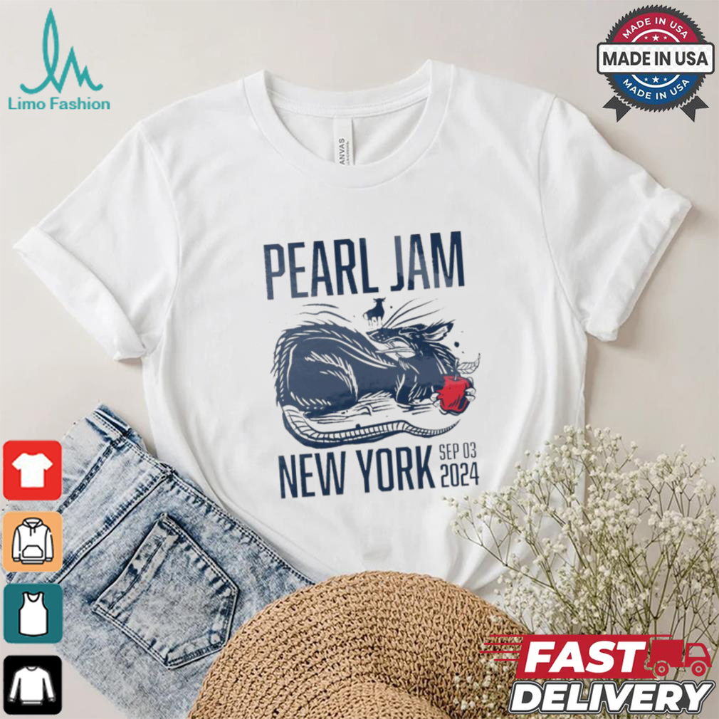 My grandfather was fond of Pearl Jam Tour New York September 3, 2024 Event Shirt. When diabetes affected his legs and made him immobile, he continued to whistle. When glaucoma affected his eyes and he lost his eyesight, he continued to whistle. As someone in her early 20s, I found my granddad’s immense pleasure from life overwhelming and infectious. Here was a person who was losing all his senses, yet was gracious enough to utilize and maximize his happiness from the senses he still retained. Try whistling. It improves your lung capacity and will send more oxygen into your bloodstream, making you feel better instantly.Try cooking. I hear it is quite therapeutic when used to counter depression. Try duck meat (if you eat non-veg). If you have trouble sleeping, I read that tryptophan (an amino acid in duck meat) puts you to sleep instantly. Alternatives: try honey with milk before sleeping.