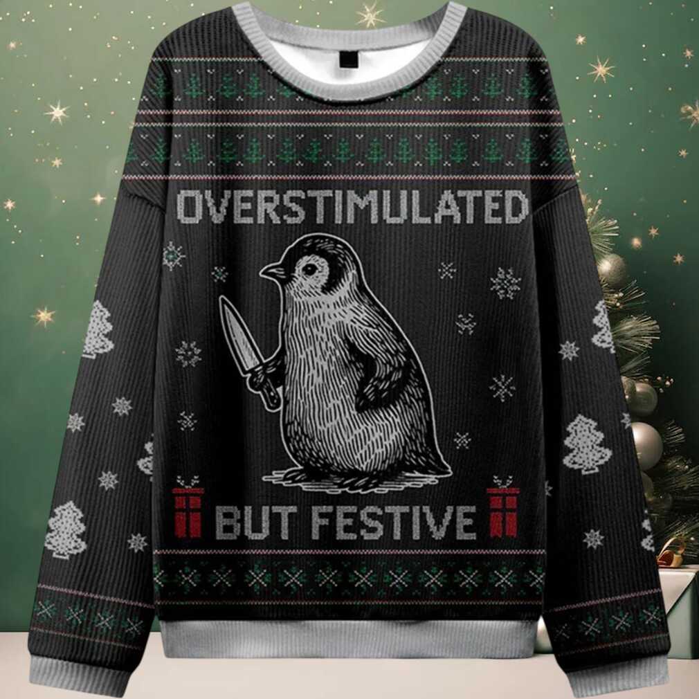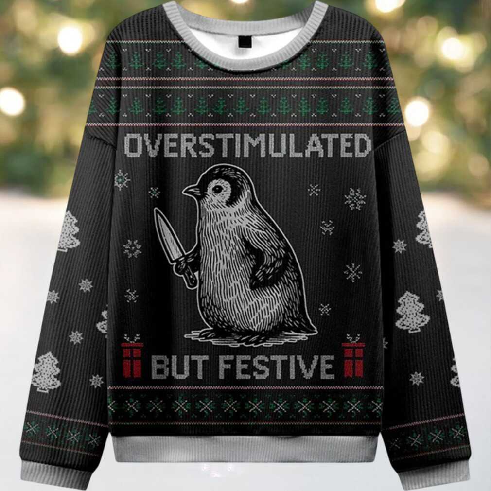 What Makes This Penguin Overstimulated But Festive Ugly Christmas Sweater Epic