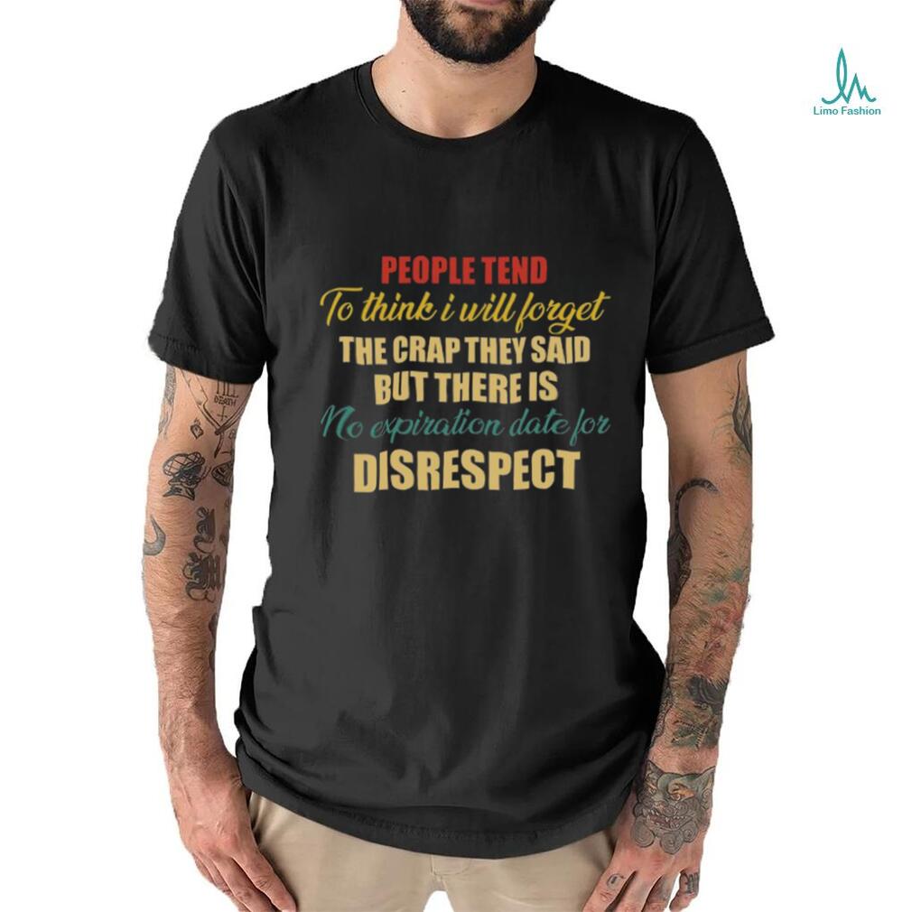 ()people tend to think i will forget the crap they said but there is no expiration date for disrespect shirt. Categories of this T-shirt is teejeep, people tend to think i will forget the crap they said but there is no expiration date for disrespect shirt from Dadyshirt ✓ Unique designs ✓ Large assortment ✓ Comfortable ✓ High-quality ✓ Easy to care for ✓ Available in a range of colours and styles for men, women ✓ Shop now ✓