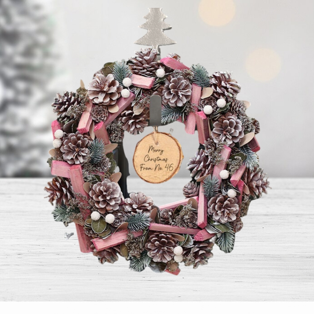 ()Personalised Luxury Christmas Festive Pink Frosted Wreath 36cm,