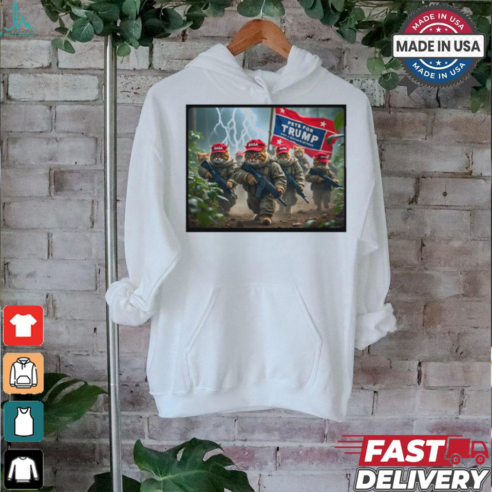 I thought she wanted water. She was Pets For Trump Cats MAGA Poster t shirt me like she does when she wants water. And doing the same to my mom. She was going back and forth from room to room yowling and scratching at us. My mom finally woke up. She felt shaky. Then she saw the blood. She barely had enough strength to yell out for me and I woke instantly.