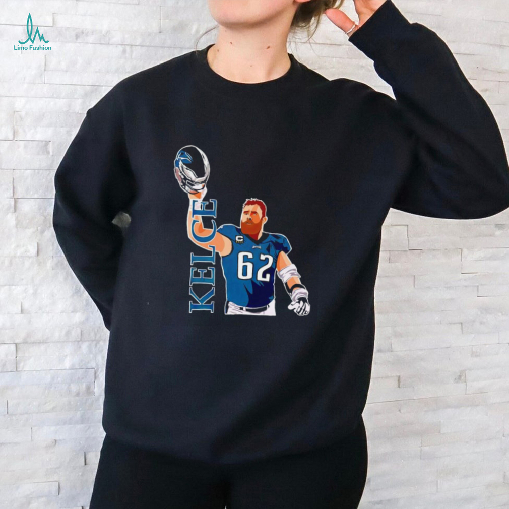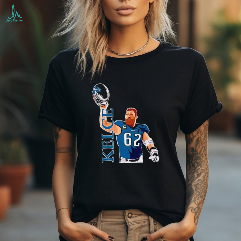 Philadelphia Eagles Jason Kelce holding helmet shirt