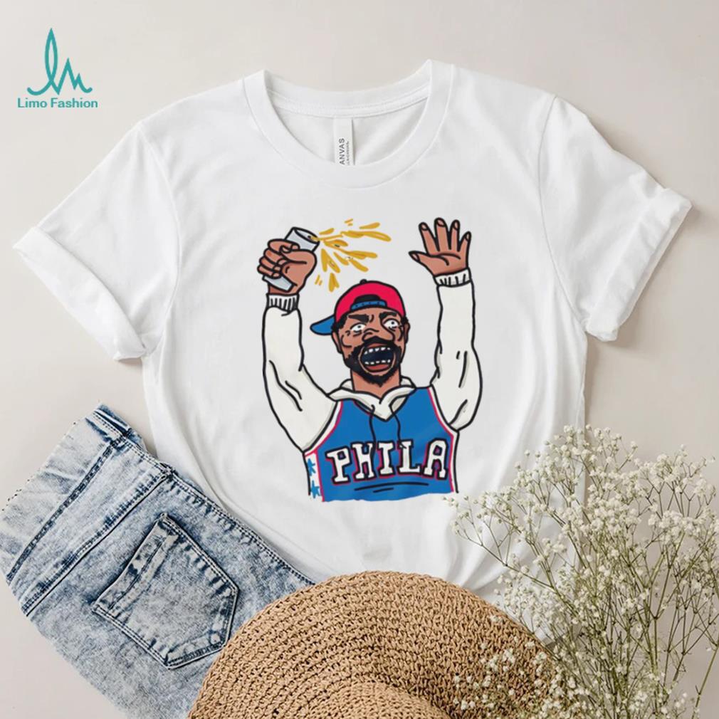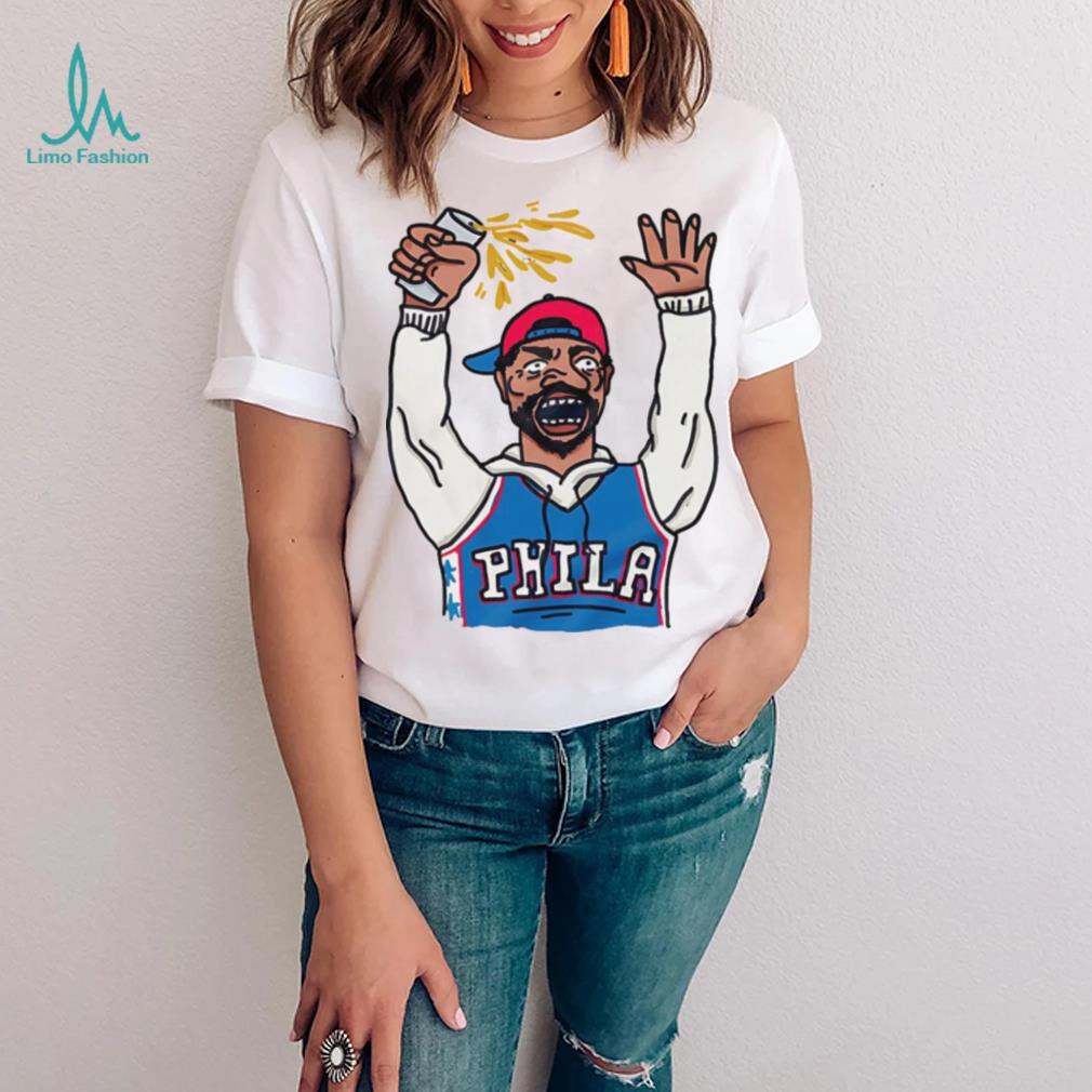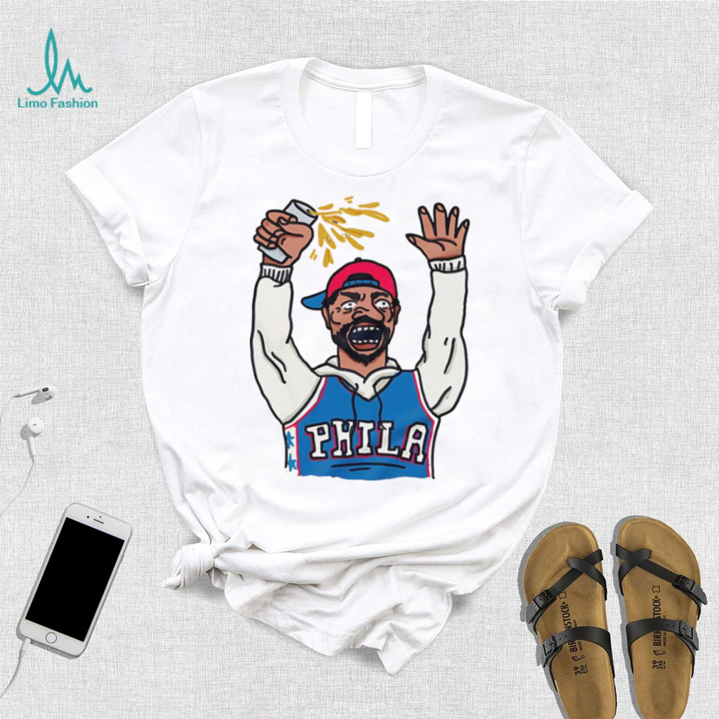 Rugby League may be the easier game to play in terms of learning how, but it has a Philadelphia Phillies angry sixers fan caricature shirt cardiovascular fitness requirement compared to the NFL — and higher than that of Rugby Union. An NFL game of 60 minutes takes about 3 hours to play, with multiple personel changes. Many NFL players are simply not fit enough to play either Rugby code, where the minimum fitness required is to play 40 minutes straight and a further 20 minutes after a 15 minute half time break. League is especially demanding on fitness because the ball is in play for a higher percentage of that time. From what I’ve seen, a lot of NFL players would require a year of physical conditioning to play rugby to any decent level.