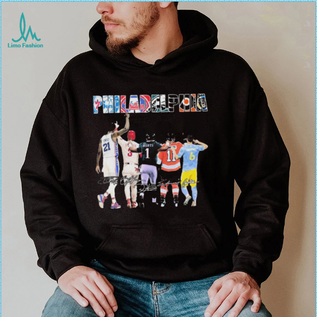 Philadelphia Sports Team Joel Embiid Bryce Harper Jalen Hurts And Travis Konecny Signatures Shirt