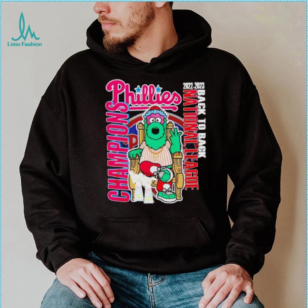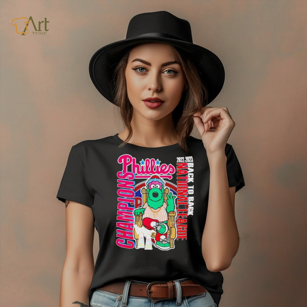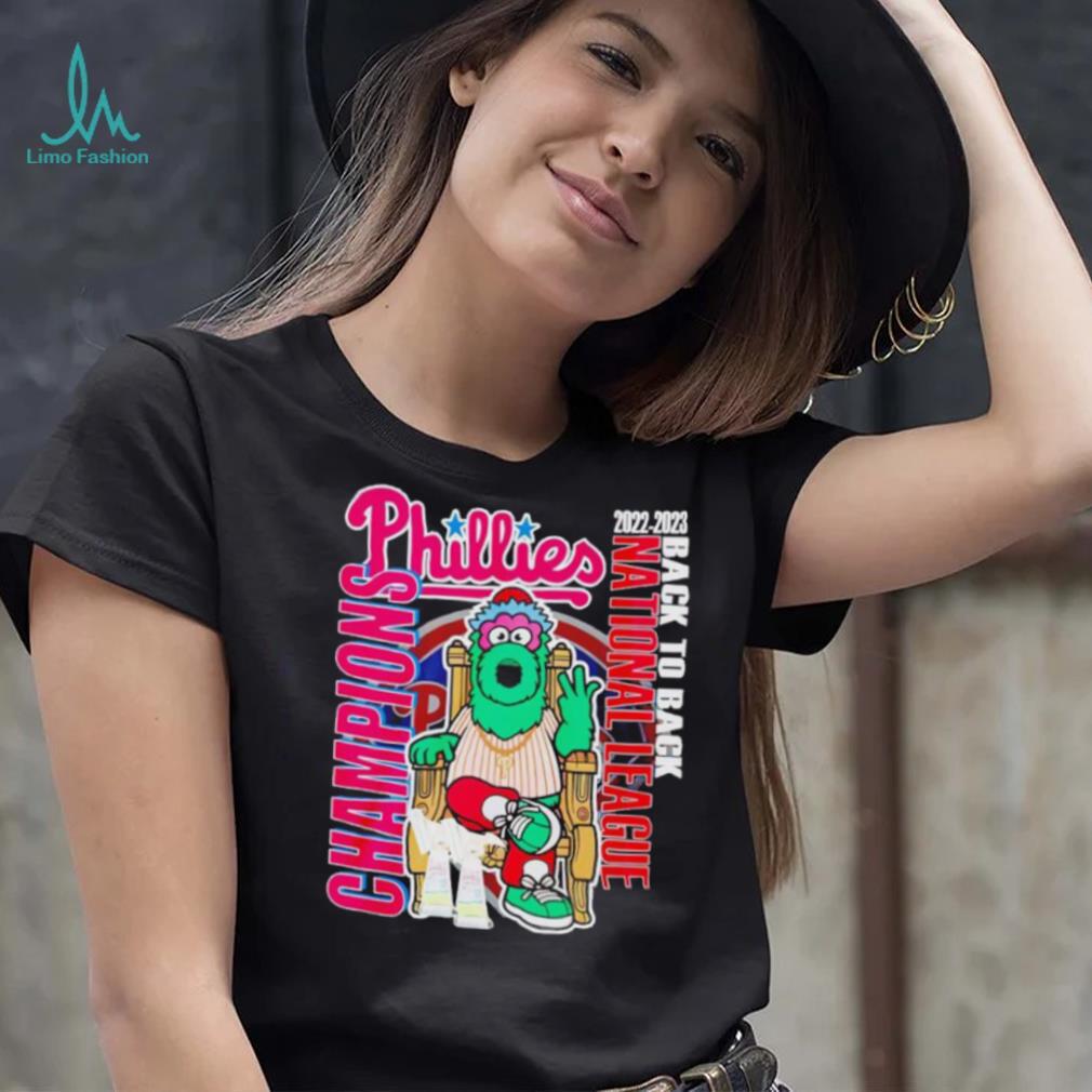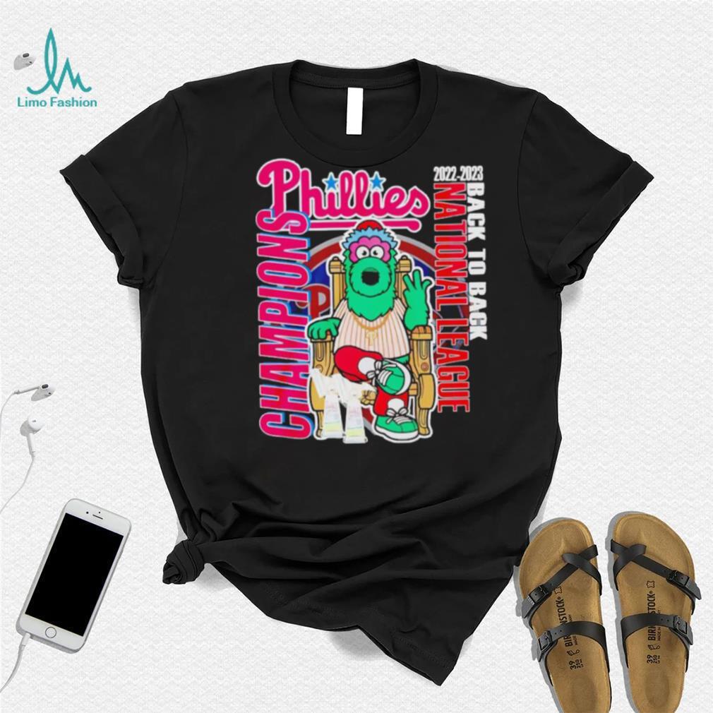 My funny story is when Santa put himself on the naughty list. I travelled the Phillies 2022 2023 back to back National League Champions shirt home from work a few years ago, and I enjoyed all the Christmas lights and decorations every night. One house had a huge blow up Santa on top of the garage, with his arm raised, waving at you when the wind blew. One day I left work early, and it was still daylight. As I turned the corner on this windy day, I saw Santa was a bit deflated. He was slightly bent over and his arm had fallen down so that his hand was between his legs, and the wind was blowing a bit, and he was gently bobbing up and down, up and down, and he seemed to be enjoying himself entirely too much! I was crying with laughter, and I can never look at Santa again without flashbacks.