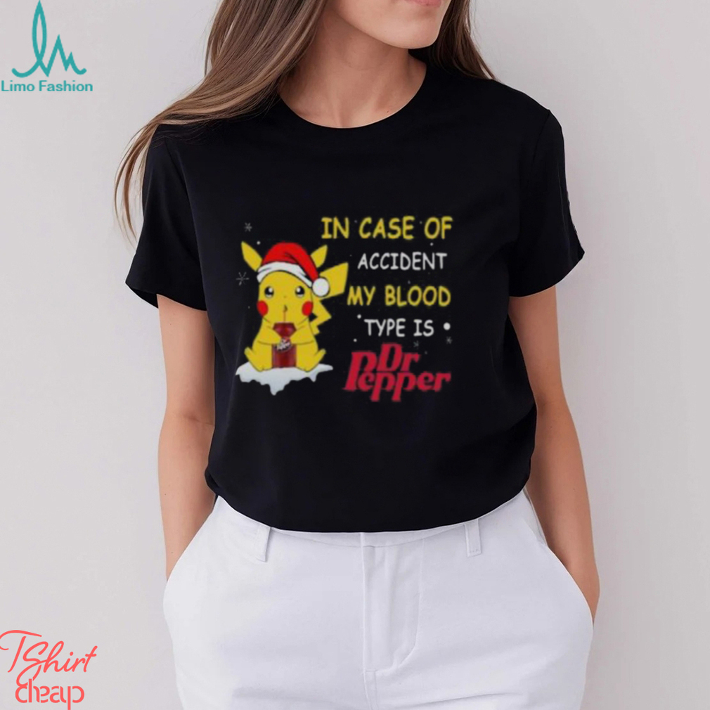 Pikachu In case of accident my blood type is Dr pepper Christmas shirt