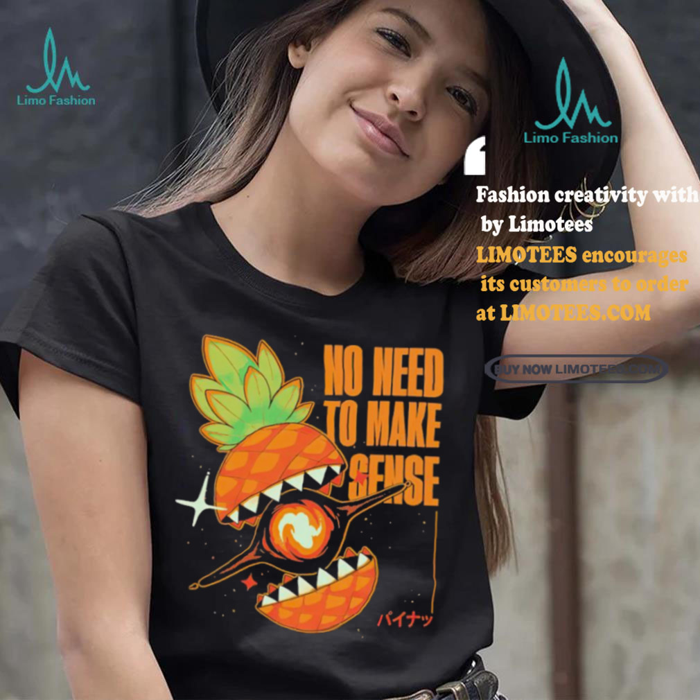 My grandfather was fond of Pineapple no need to make sense shirt. When diabetes affected his legs and made him immobile, he continued to whistle. When glaucoma affected his eyes and he lost his eyesight, he continued to whistle. As someone in her early 20s, I found my granddad’s immense pleasure from life overwhelming and infectious. Here was a person who was losing all his senses, yet was gracious enough to utilize and maximize his happiness from the senses he still retained. Try whistling. It improves your lung capacity and will send more oxygen into your bloodstream, making you feel better instantly.Try cooking. I hear it is quite therapeutic when used to counter depression. Try duck meat (if you eat non-veg). If you have trouble sleeping, I read that tryptophan (an amino acid in duck meat) puts you to sleep instantly. Alternatives: try honey with milk before sleeping.