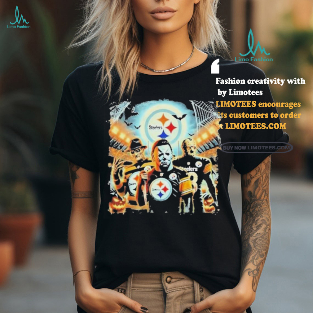 He used his magical ways to bring Pittsburgh Steelers Halloween Horror Characters Shirt self proclaimed “cat haters” around to love him and his kind. He would creep up behind them stealth like on the couch back for example and lick their hair. Often for minutes before they even realized he was there and by then, he had already given them a new do. Cat do. He was also a fabulous hair stylist. But if someone was a cat hater it was as if he knew it and insisted they reevaluate that by showing them affection and demanded their attention in until they gave in. They always ended up given in to him.