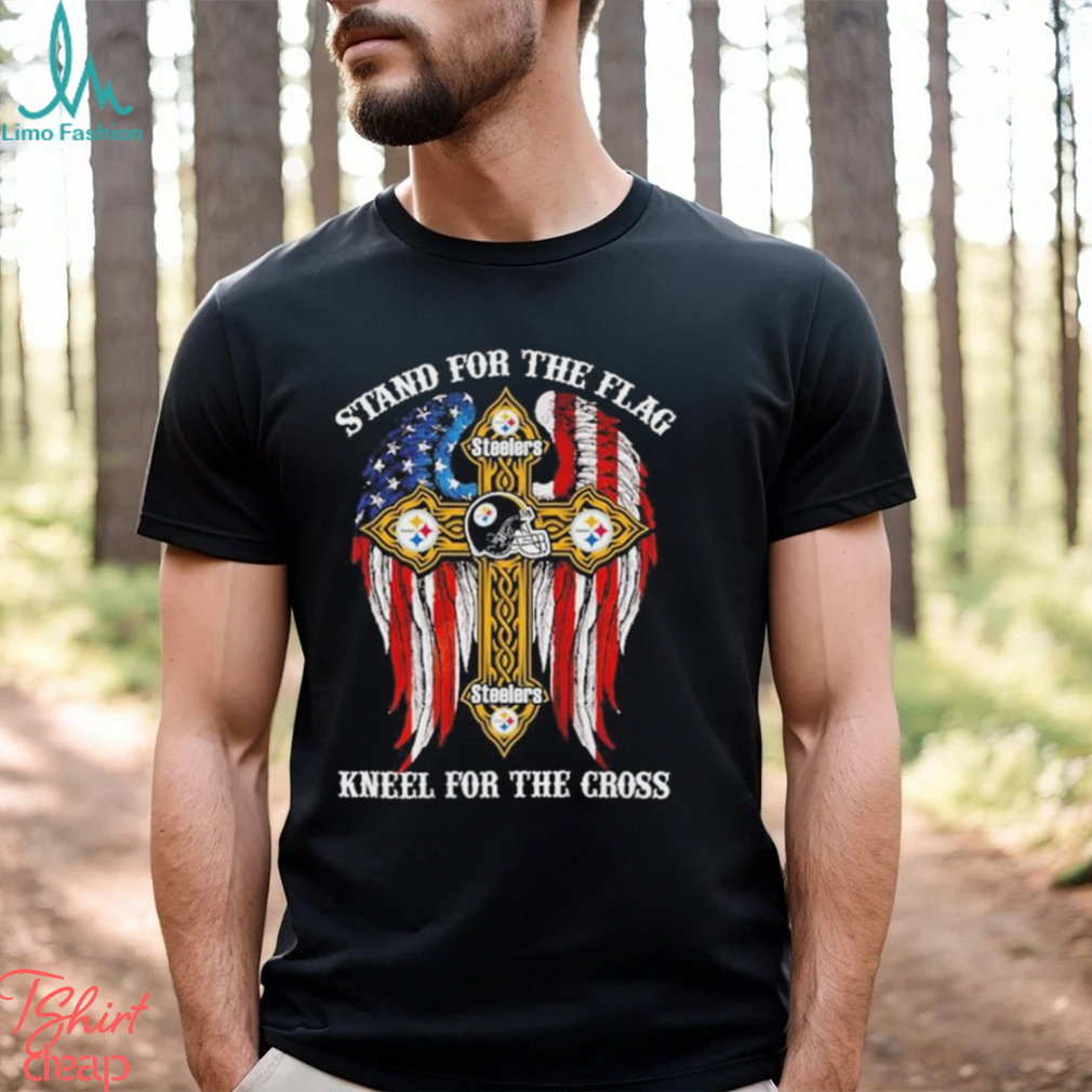 My stepfamily – my brother, brother’s wife, and her kids (which he adopted) – have many wonderful qualities, but organisation is not one of Pittsburgh Steelers Stand For The Flag Kneel For The Cross 2024 T shirt. Even when I was 15 my brother (18 years older than me) would call me, panicking, on Christmas Eve, wanting me to come shopping and help pick out stuff for his girlfriend. Now that he’s married and in his fifties, he no longer calls me for shopping help, but I expect he still leaves a lot of it till Christmas Eve. This year I’ve been texting him and my niece since September, asking what to get for my nephew and his partner (who I don’t know that well, and I’ve never met his partner), my niece’s partner (ditto), and five kids (I was never an average kid and have no idea what to buy children, as shown by a couple years ago, when I bought the 3-year-old a box set of the Chronicles of Narnia, and then was startled when I was gently told that 3-year-olds can’t read. I taught myself to read with Enid Blyton at 3, and my dad gave me Narnia by the end of that year, but apparently this is not the norm).
