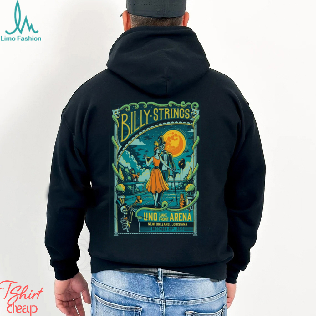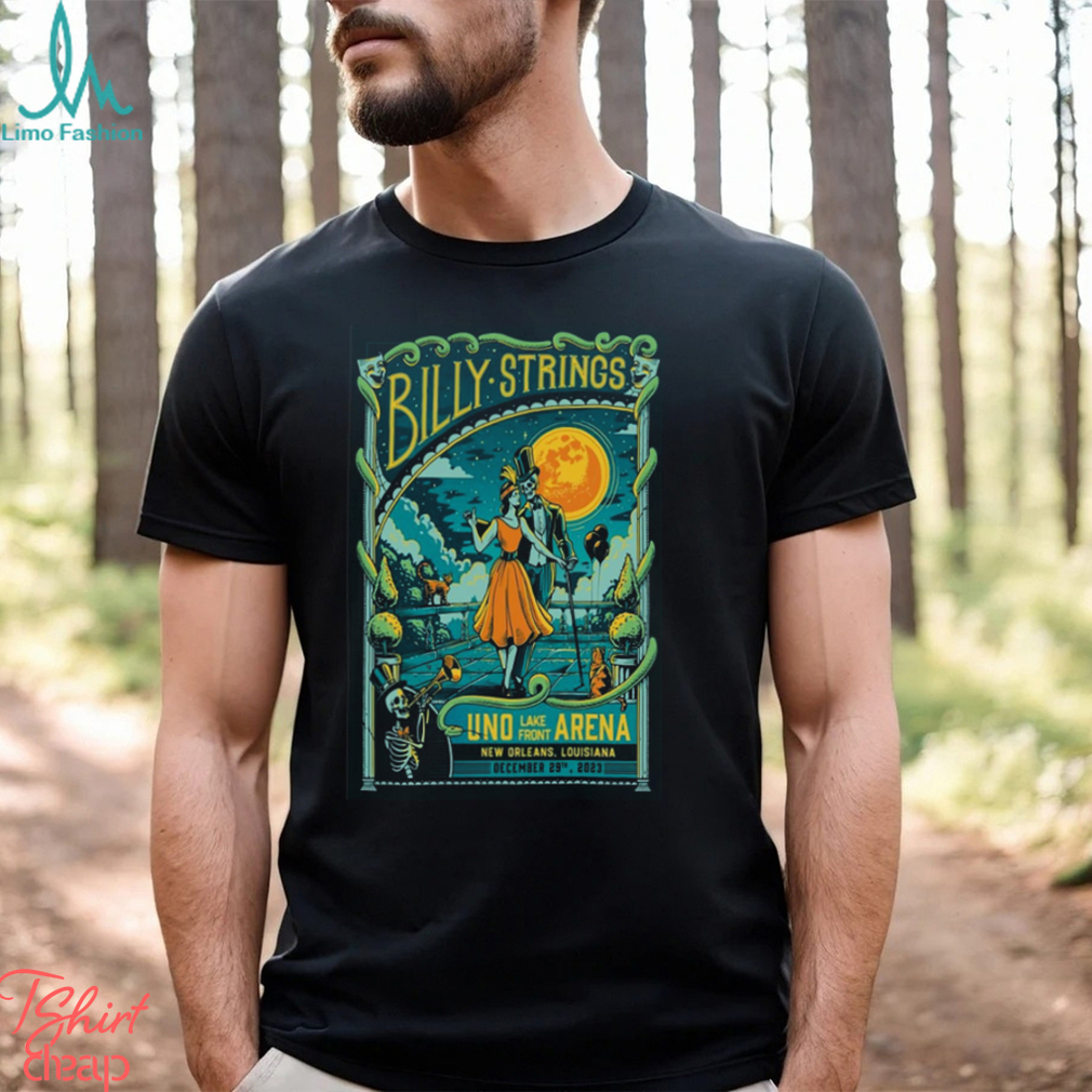 The press about Victoria’s trees in the 1840s and 1850s spread the Poster Billy Strings UNO Lakefront Arena Dec 31, 2023 t shirt to people in America. Each year, Queen Victoria did the tree a little differently and it was covered in the press. Here is the Queen’s from 1845 painted by Joseph Nash. The top seems to be blocked from view. This is from 1850 at Windsor Castle by James Roberts. It looks to me like the one on the right has something on the top, but not the one on the left. Here is a painting of Victoria’s tree in 1851 by William Coden, the Younger. It seems not to have a star or angel, but it is hard to see. Here is one with a angel. That is Victoria and Albert and the kids. In this it is 1852. Here is another year in 1857 This year is seems to have a royal symbol and crown.