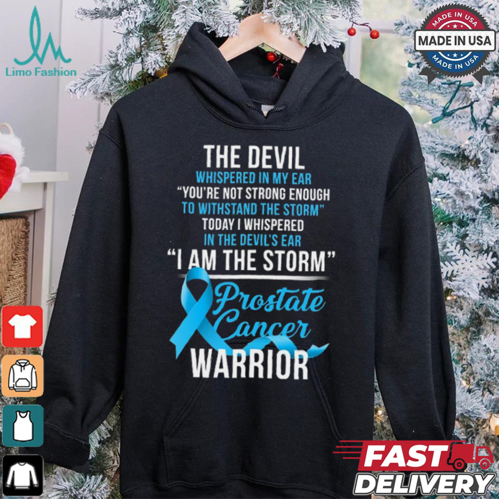 It’s a Prostate Cancer Warrior I Am The Storm T Shirt kid’s movie that adults can enjoy. The only bad language is done in a cutesy way, with unintelligible sounds, kind of like the adults always talked in Peanuts cartoons. Ralph gets his mouth washed out with soap for it. The only violence is a scene where Ralph, while being picked on by a bully, snaps and fights back. It isn’t overly violent, and it isn’t glorified fighting, it’s just a couple of kids fighting in the snow like kids do. Ralph is crying throughout, so it is not some kind of ‘Aha, the victim has turned the tables with violence!’ I think the only other scene of violence is where Ralph fantasizes that he defends the house from burglars in the backyard with a BB gun. The scene is in black and white and sped up like a funny silent movie, and the burglars wear comical, old timey burglar outfits – striped shirt and black masks, like the Hamburglar. I think Ralphie shoots them in the butt as they try to climb back over the fence to get away.