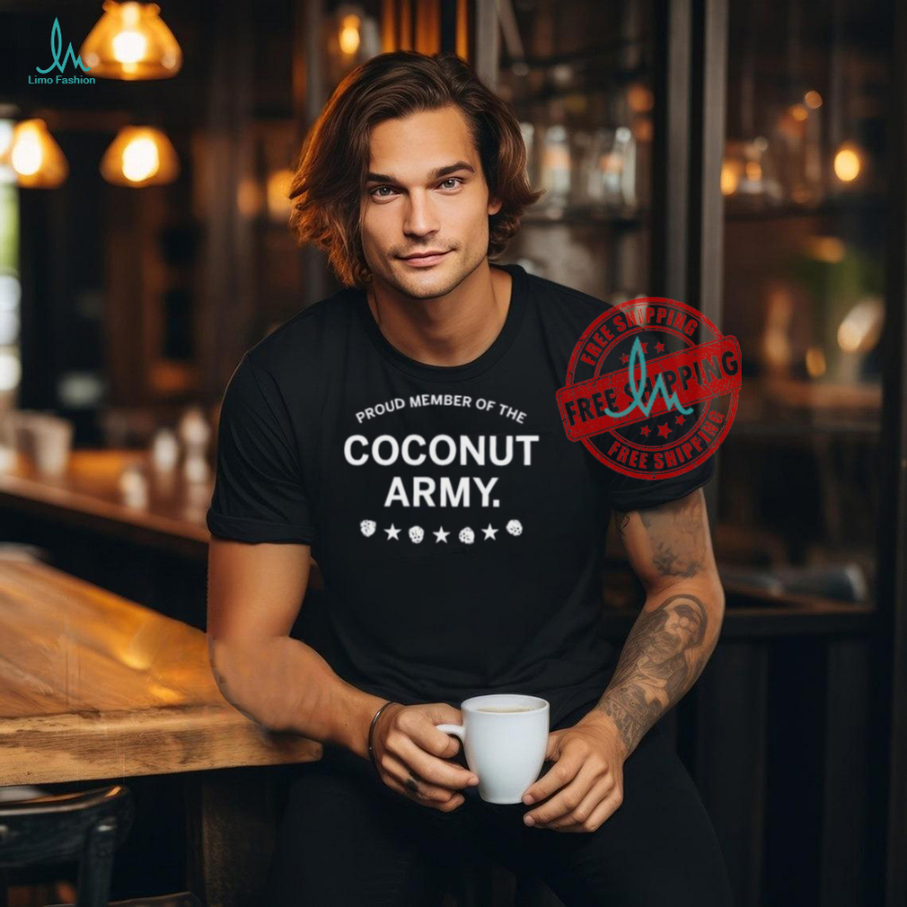 Now and again, playing some Proud Member Of The Coconut Army Kamala Harris Ladies Boyfriend Shirt sound assistance decrease yelping. There are numerous CDs for hounds who need unwinding. A pheromone diffuser might be useful on the off chance that you as of late protected a canine and it is making some hard memories adjusting to new commotions and scents. Mutts will in general bark less whenever permitted to remain in the home versus kept in the yard throughout the day. Canines are pack creatures and flourish with human friendship. It is imperative to place some exertion in deciding why your canine is yapping so to help diminish the woofing in any case. Heading off to the base of the issue is vital.