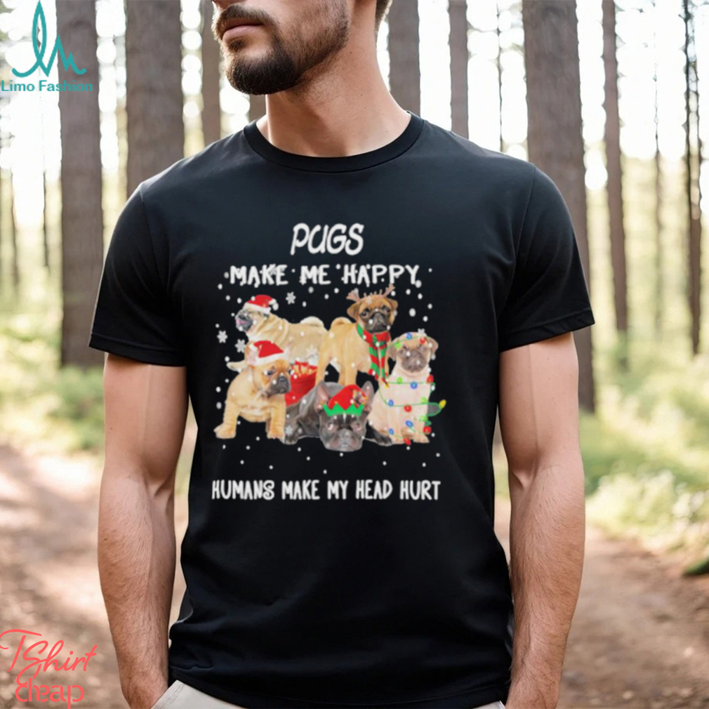 Pugs make me happy humans make my head hurt Christmas shirt