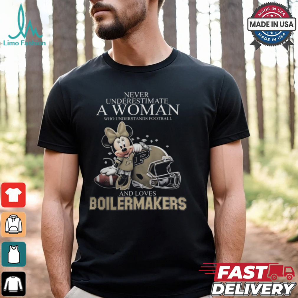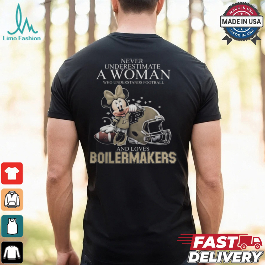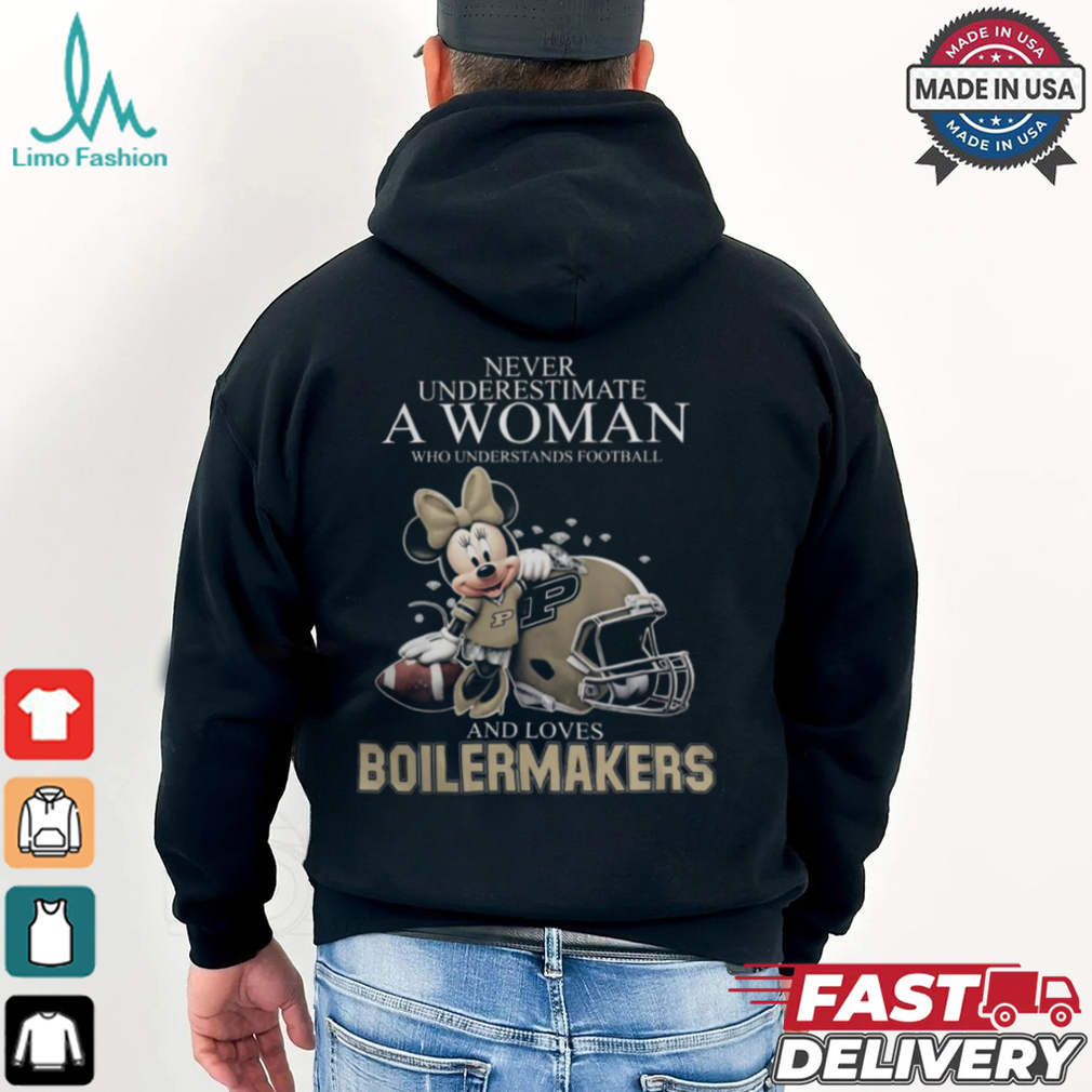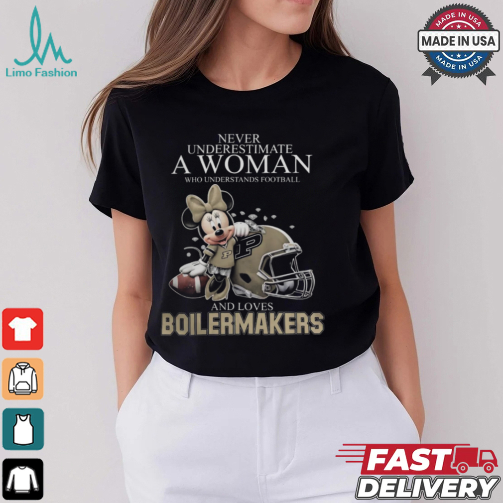 ()Purdue Boilermakers x Minnie Mouse Never Underestimate A Woman Who Understands Football And Loves Shirt hoodie, tank top, sweater and long sleeve t-shirt