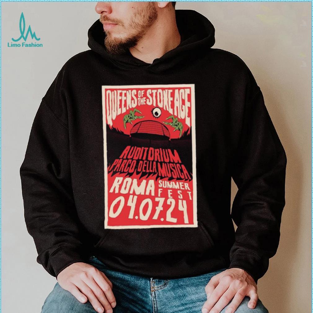 One of the books of the bible tells the story of the Queens Of The Stone Age Rome Summer Fest 2024 Poster Shirt .. And how they began. The missing book is the book of Enoch. And it tells the story of how magic started. Basically there were angels who looked down on man and wanted to be with the females and they left heaven to come down, and they mated with the women and started families but they also taught man the sacred magics, the magic of metals, making iron, brass, copper and gold and silver. They taught them the medicine magics and how to heal themselves with herbs and even how to abort a baby. They taught them the mystical secrets.. Of heaven presumably. Of numbers and letters. This tribe of people was called the magi. Because they were like magicians to the other peoples. And possessed knowledges unknown to them. God became so outraged when he found them out , that he is said to have killed all the off spring of the angels who were a giant people. And produced giant children much larger than the other people – and he punished the Angels.