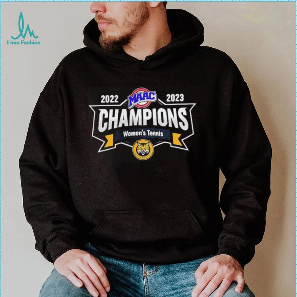 Pollfish is a platform that allows you to easily conduct a survey and reach a random audience of Quinnipiac Bobcats 2023 MAAC Women’s Tennis Champions shirt half a billion people across 160+ countries. It targets real people in mobile apps they are using already, so responses are instantaneous, and you can target into extremely specific categories such as age, gender, state, city, zip code—even congressional district or mobile carrier. This market research company also focuses on fraud detection by using machine learning to detect and weed out suspicious behavior. And, since it has access to such a large network, any answers that even seem suspicious are immediately thrown out. In the end, you are left with only high-quality responses that can be verified by user IDs (most other platforms do not offer this).
