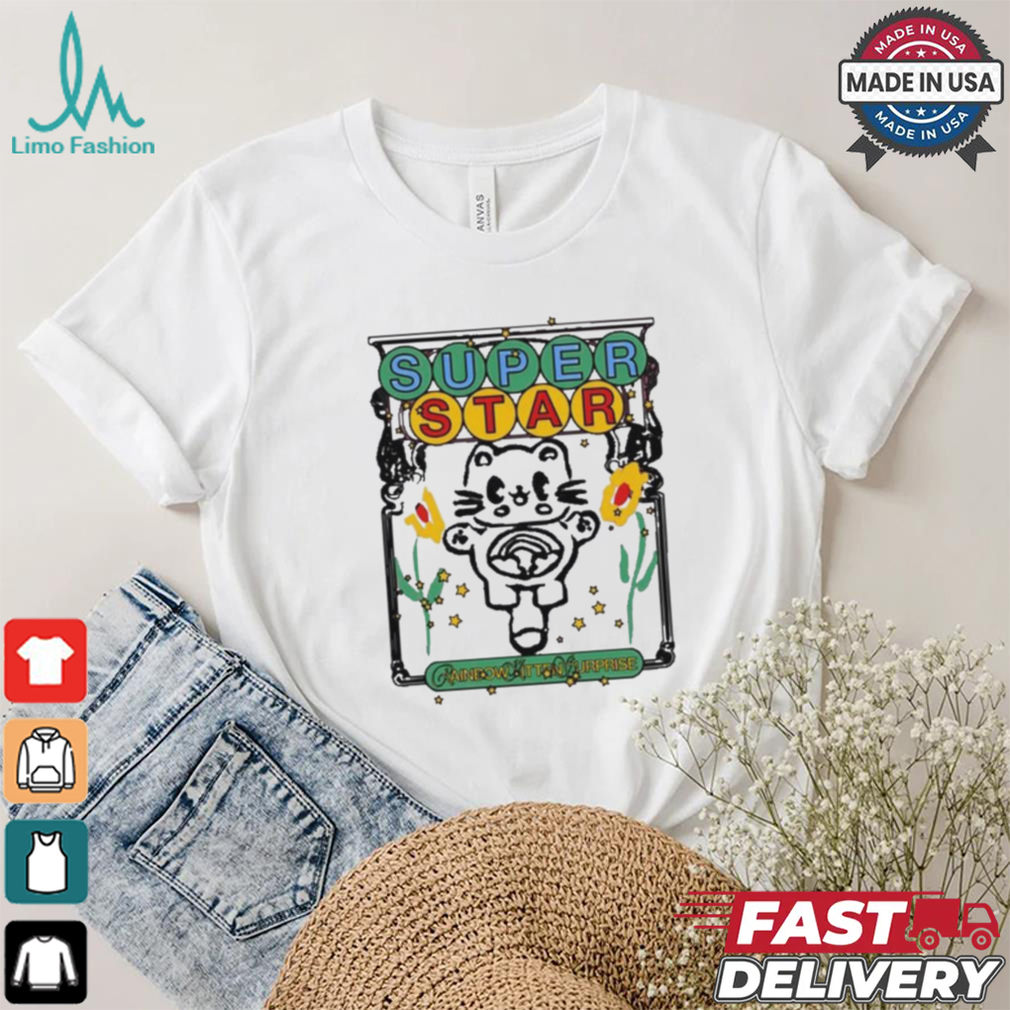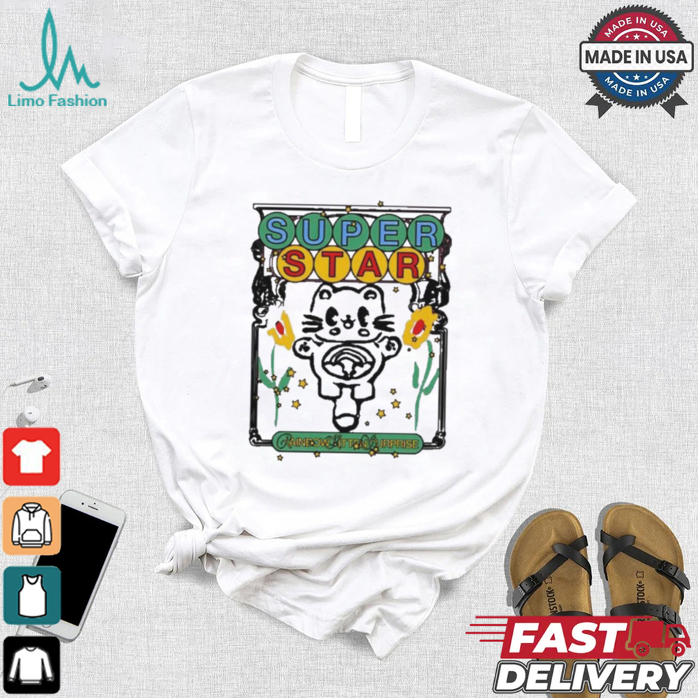 When Delores spent his first night actually out with the other chickens in the Rainbow kitten surprise star kitten shirt, I was anxious about how he would handle himself, as he was pretty shy. After a few false starts (and getting pushed off perches by the other chickens) he chose a walnut branch that lead to the night perches and slept on that. When Delores became a big, beautiful Golden Phoenix adult rooster, I thought the hens would probably make absolute fools of themselves trying to get his attention – and if he ignored them it would serve them right! I suppose I should have done something about the name – but Delores responded to “Delores” and appeared fine with it. (Also, my Aunt Delores would have been devastated if I changed his name.) A friend suggested calling him “Del” – which sort of made sense – but that sounded like he was lead singer in a retro 60’s band. As long as Delores didn’t mind – and let’s face it, he didn’t care – I was perfectly content to have a sweet rooster named Delores.