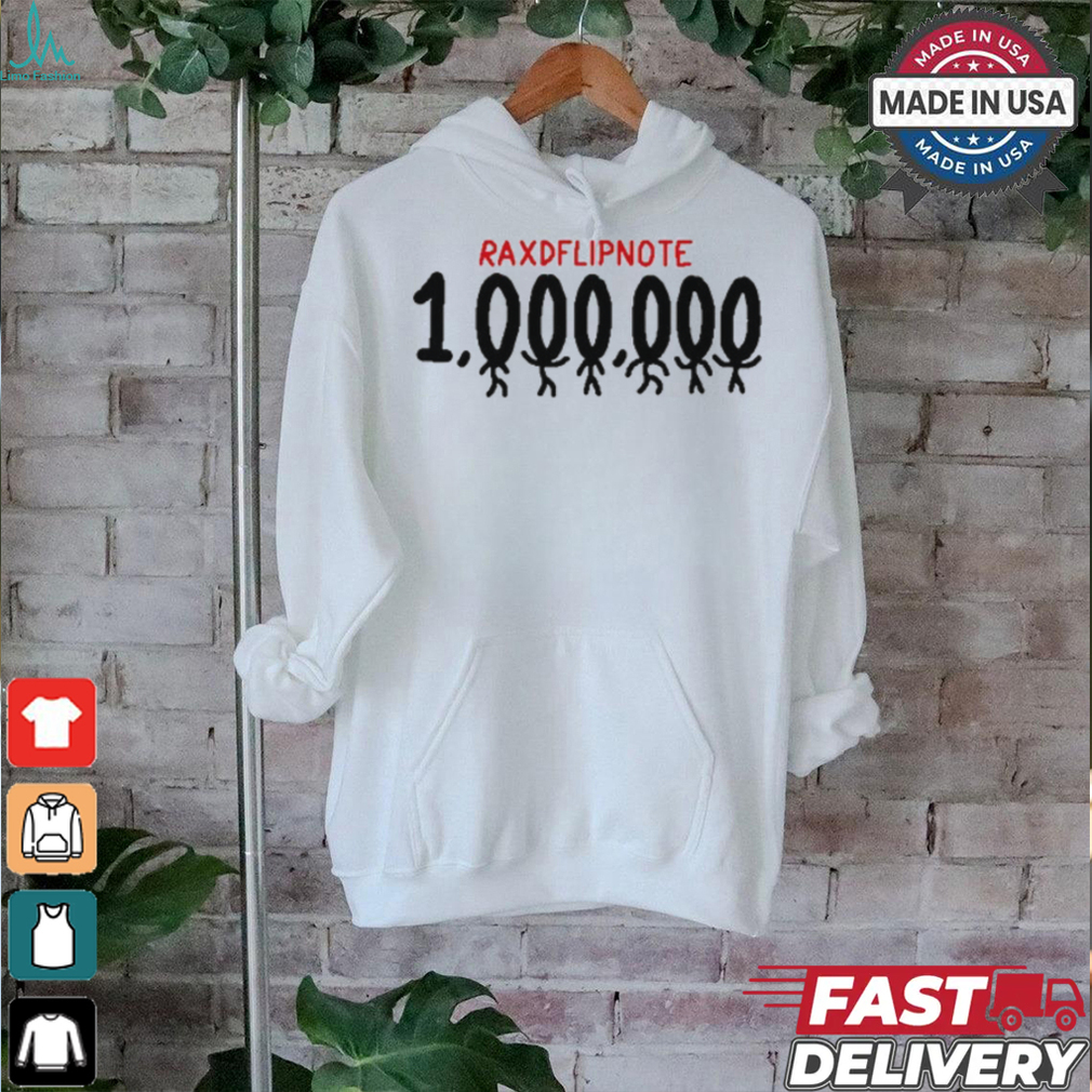 This brings me to my seventh point. Find out what Raxdflipnote One Million T Shirt want is in fact very difficult. However, to quote Steve Jobs, “when you find what you love, you will know it. Keep looking, don’t settle.” I am not too sure if the Steve Jobs model is universally applicable, as I do think that his happiness is based on a considerable degree of luck (what he liked doing, i.e. inventing I.T. products, was simultaneously the hottest thing going in the world when he was doing it.