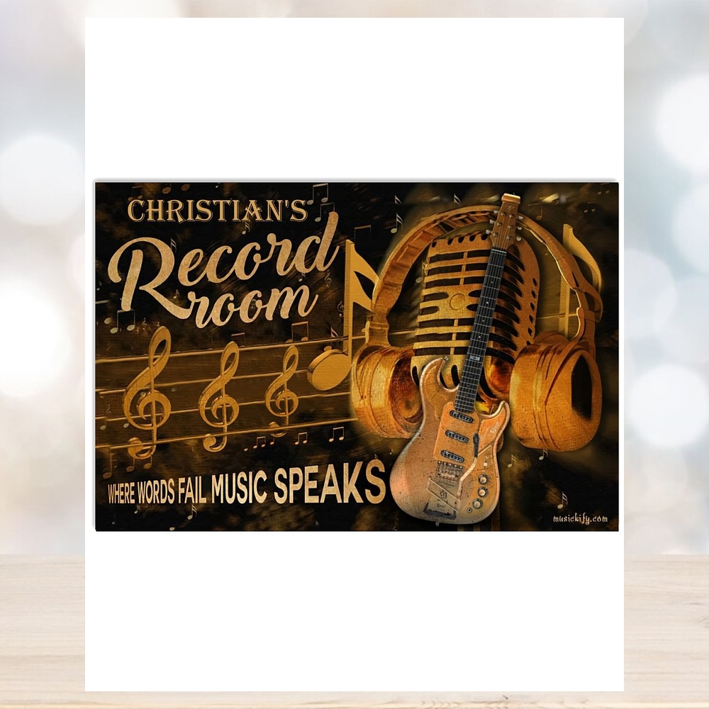 ()Recording Room Where Words Fail Music Speaks Guitar Horizontal Poster,