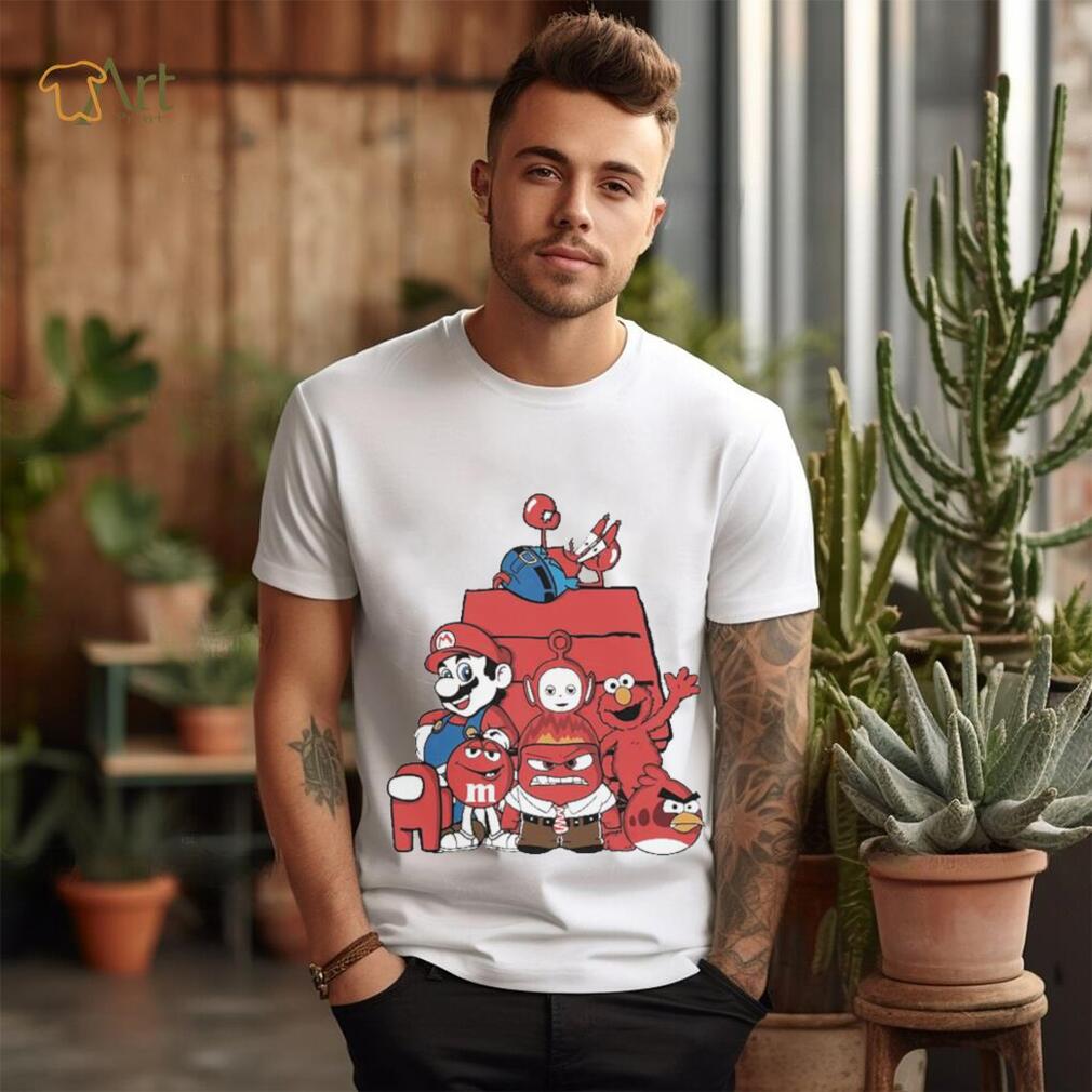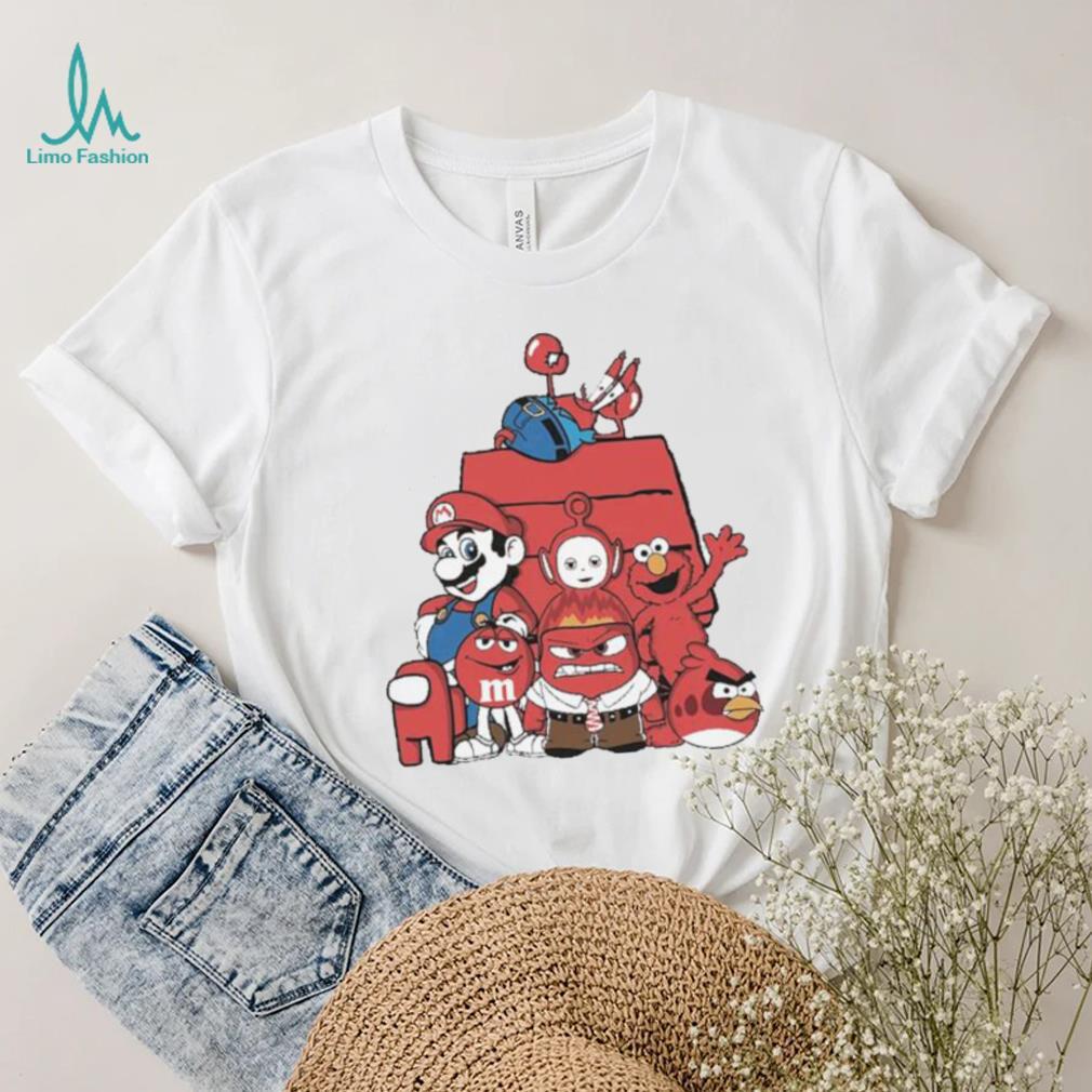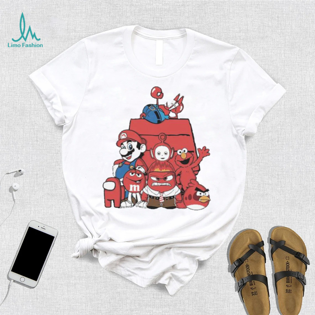 Red House Cartoon Characters Mario Angry Bird And Muppet T shirt