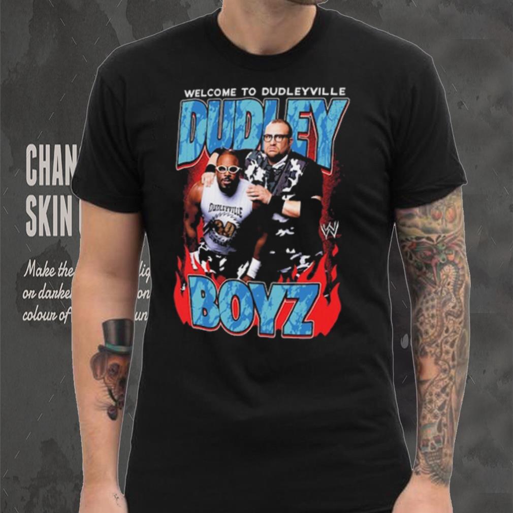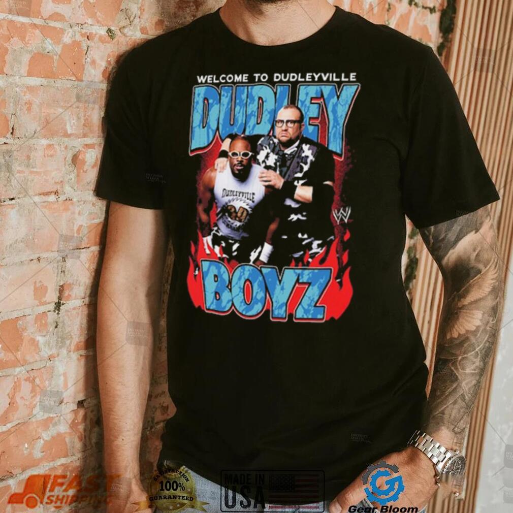 The Ripple Junction Black The Dudley Boyz Welcome to Dudleyville T Shirt is educational in nature and also includes holiday items from the other world religions such that the large majority of humanity (66-90%) are covered including purely secular displays. The displays would include educational material created by a diverse and multicultural team of experts and educators. This would be acceptable in museums and schools. A display that does not focus on Christianity but also includes secular and other world religions decorations as would be appropriate for the season. The displays should not be intrusive and should be ornamental in nature. A description or plaque explaining the religions represented should be placed nearby.