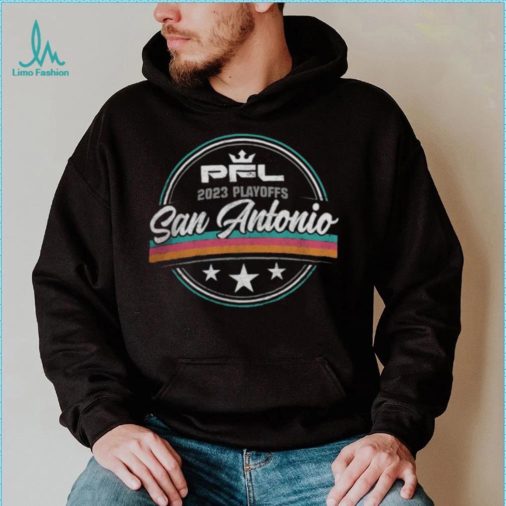 Rugby is a lot more fluid. There is a squad of around 50 in a fully pro club, but only 23 in a match day squad. About 30 players at a club are regular performers in the “first team” squad, whilst the other 20 are developing players or reserves who step in as injury cover. The second tier of English Rugby Union is a mixture of professional and semi-professional players, the 3rd tier is mainly semi-pro. Younger players from the first tier sides are routinely sent out on loan to second and third tier clubs to gain experience. This can work the other way as well — recently an injury crisis in a specialised position (tighthead prop) at my local top flight side led to a semi-pro player who works as a San Antonio 2023 PFL Playoffs T Shirt from a 3rd tier club being borrowed on loan. One minute he’s teaching kids, the next he’s running out infront of 15,000 supporters alongside international players being paid over $500,000 a year.