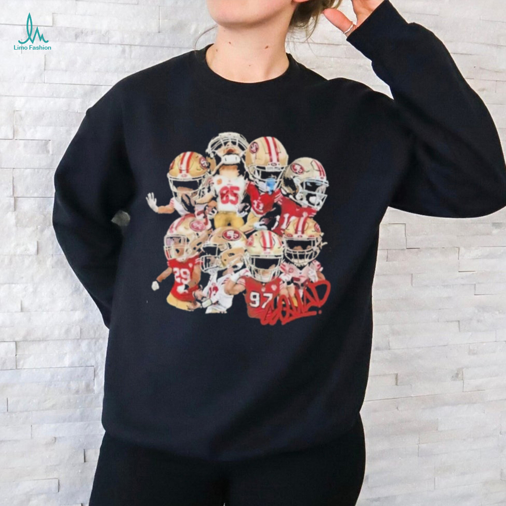 The Northern Protestant German tradition is supposed to come from a San Francisco 49ers Chibi Sport Team Super Bowl LVIII 2024 Shirt in 1536. Of course the tradition is really pre-Christian. Yule trees were dedicated to Odin at solstice and decorated with fruit and candles. But the story goes that Luther was walking through a pine forest near his home in Wittenberg when he suddenly looked up and saw thousands of stars glinting jewel-like among the branches of the trees. This wondrous sight inspired him to set up a candle-lit fir tree in his house that Christmas to remind his children of the starry heavens from whence their Saviour came. It really started spreading in popularity in the late 1700s with the rise of German Romanticism and German Nationalism. upper middle class Protestant families in Prussia wanted to express what the thought of as folk and country traditions. The early descriptions of German trees in the 1600s do not mention stars or angels. They say that people in Strasbourg “set up fir trees in the parlors … and hang thereon roses cut out of many-colored paper, apples, wafers, gold-foil, sweets, etc.