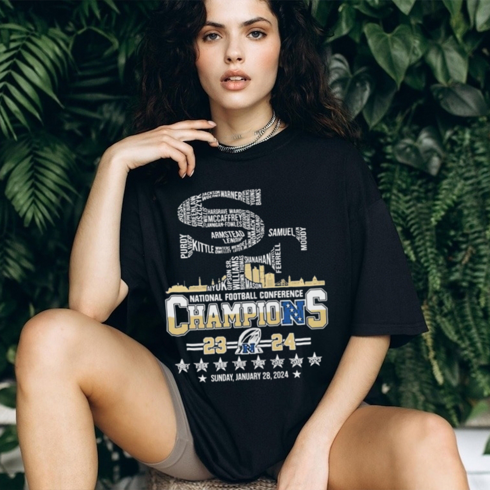 Best San Francisco 49ers Logo Players Name National Football Conference Champions 2023 2024 Sunday, January 28 Shirt