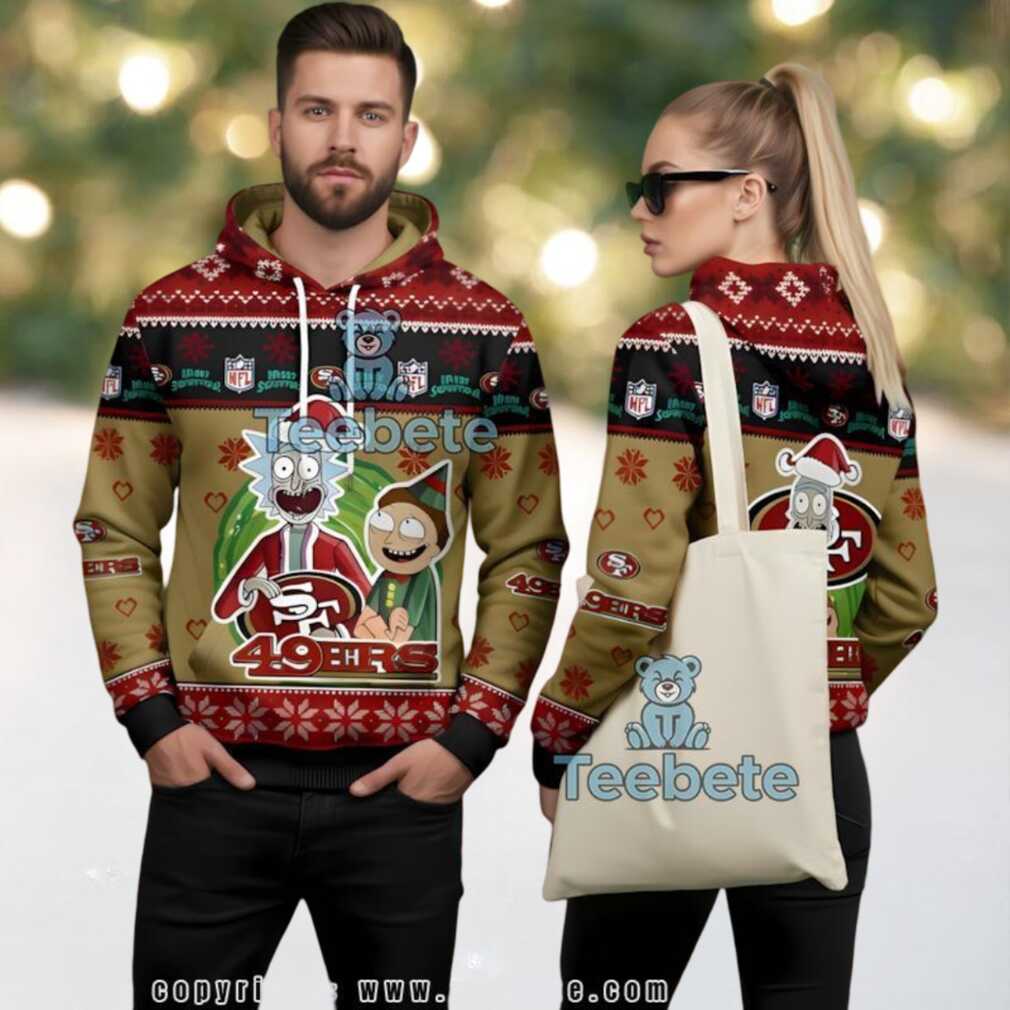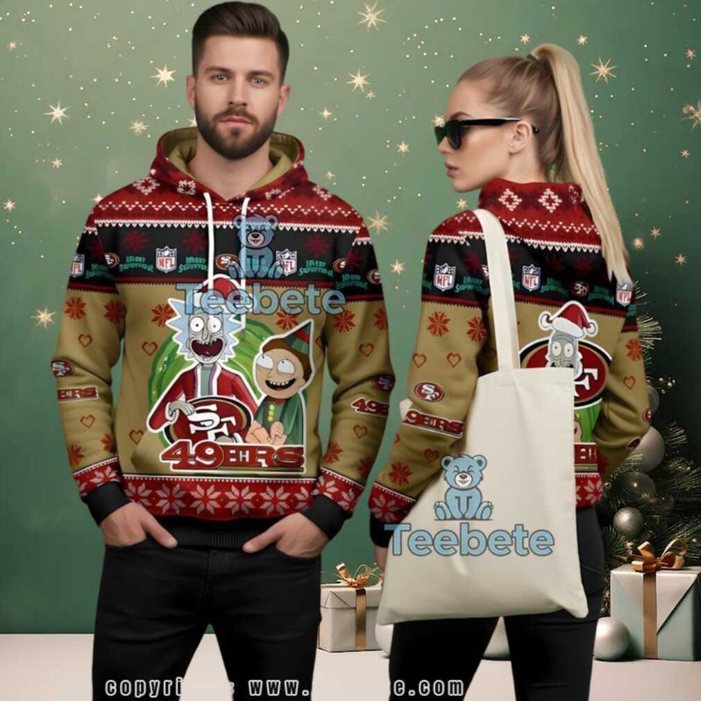 The **San Francisco 49ers Rick And Morty Ugly Christmas 3D Print Hoodie** is tailor-made for the fan who lives at the intersection of pop culture and passionate sports devotion. Are you the one who can quote both *Rick and Morty* episodes and 49ers stats? Do you seek out holiday apparel that’s genuinely “ugly” in the best possible way, sparking laughter and camaraderie? Then this San Francisco 49ers ugly Christmas hoodie is undeniably for you. It’s the ultimate attire for “ugly Christmas sweater” parties, casual game days, comic conventions, or simply expressing your unique style during the festive season. This hoodie also makes an unforgettable gift for any San Francisco 49ers fanatic or *Rick and Morty* devotee in your life, especially if they appreciate humor and originality. Prepare gifts for a wonderful Christmas season that will be a smash hit and truly stand out!