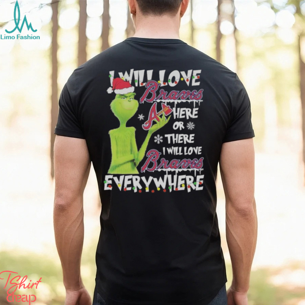 Santa Grinch I will love Atlanta Braves here or there I will love everywhere Christmas shirt