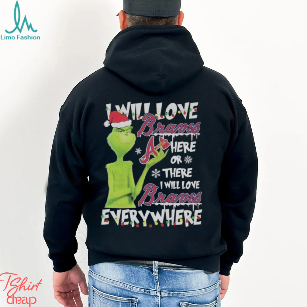 ()Santa Grinch I will love Atlanta Braves here or there I will love everywhere Christmas shirt hoodie, tank top, sweater and long sleeve t-shirt