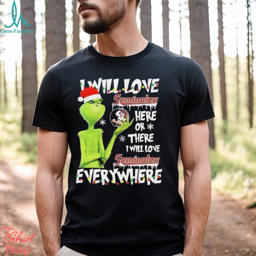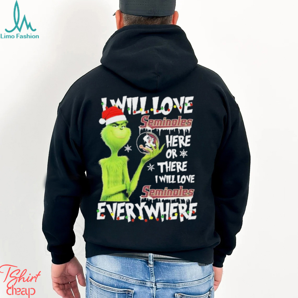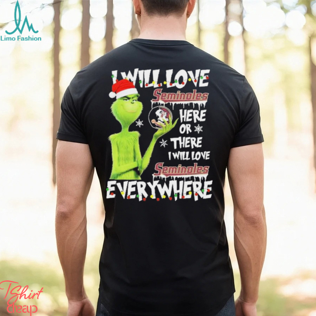 ()Santa Grinch I Will Love Florida State Seminoles Here Or There I Will Love Florida State Seminoles Everywhere Shirt hoodie, tank top, sweater and long sleeve t-shirt