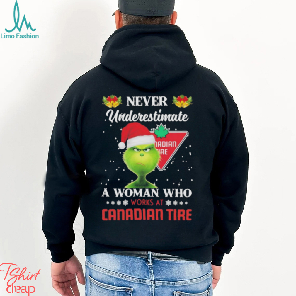 ()Santa Grinch never underestimate a woman who works at Canadian Tire Christmas shirt hoodie, tank top, sweater and long sleeve t-shirt