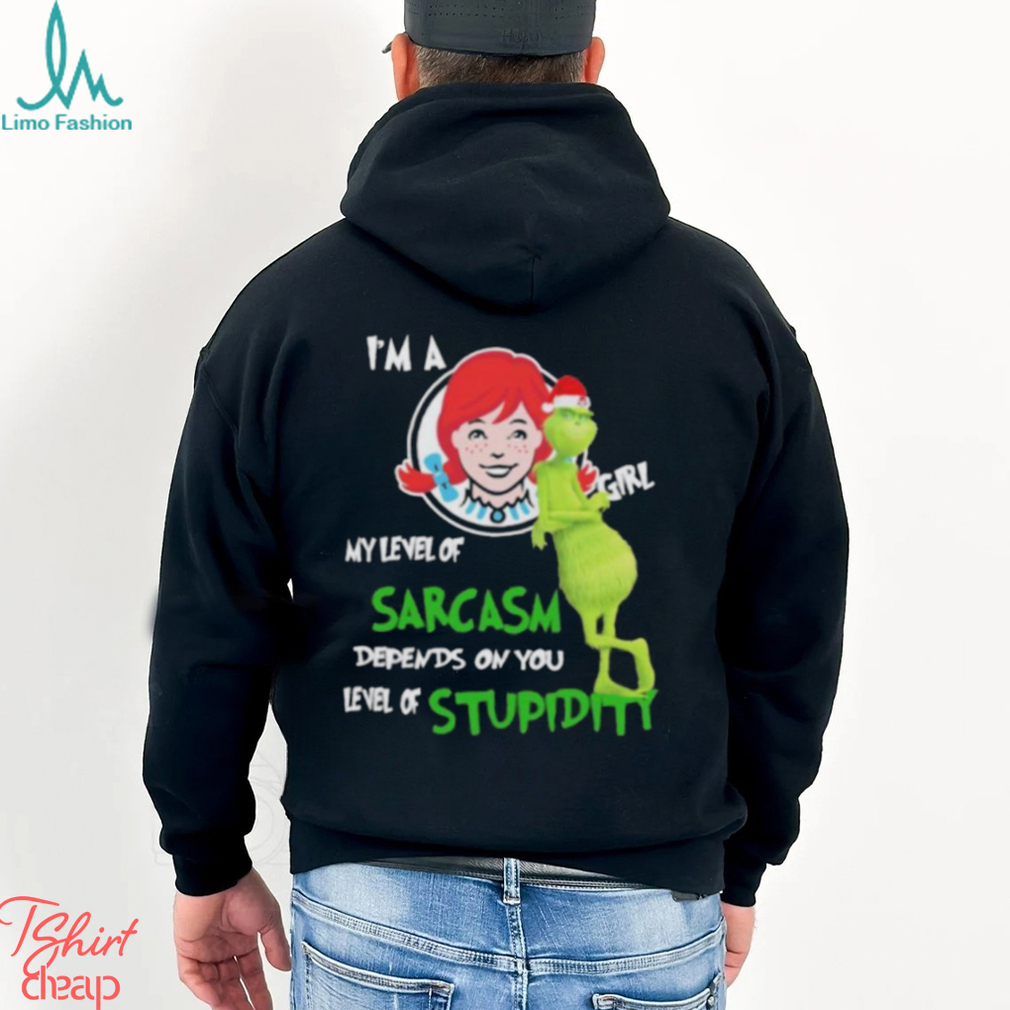 Santa Grinch Wendy’s I’m a girl my level of sarcasm depends on your level of stupidity Christmas shirt hoodie, tank top, sweater and long sleeve t-shirt