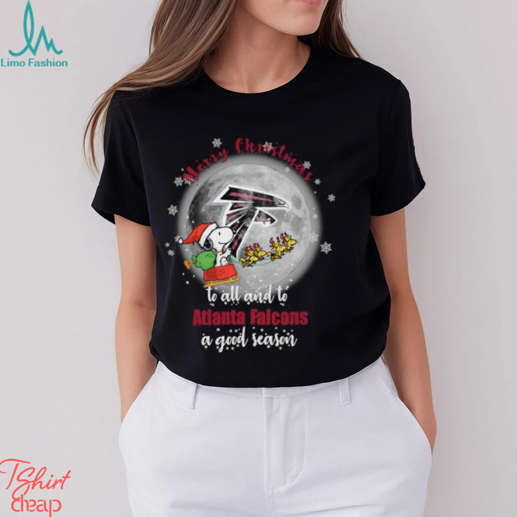 ()Santa Snoopy merry christmas to all and to Atlanta Falcons a good season shirt hoodie, tank top, sweater and long sleeve t-shirt