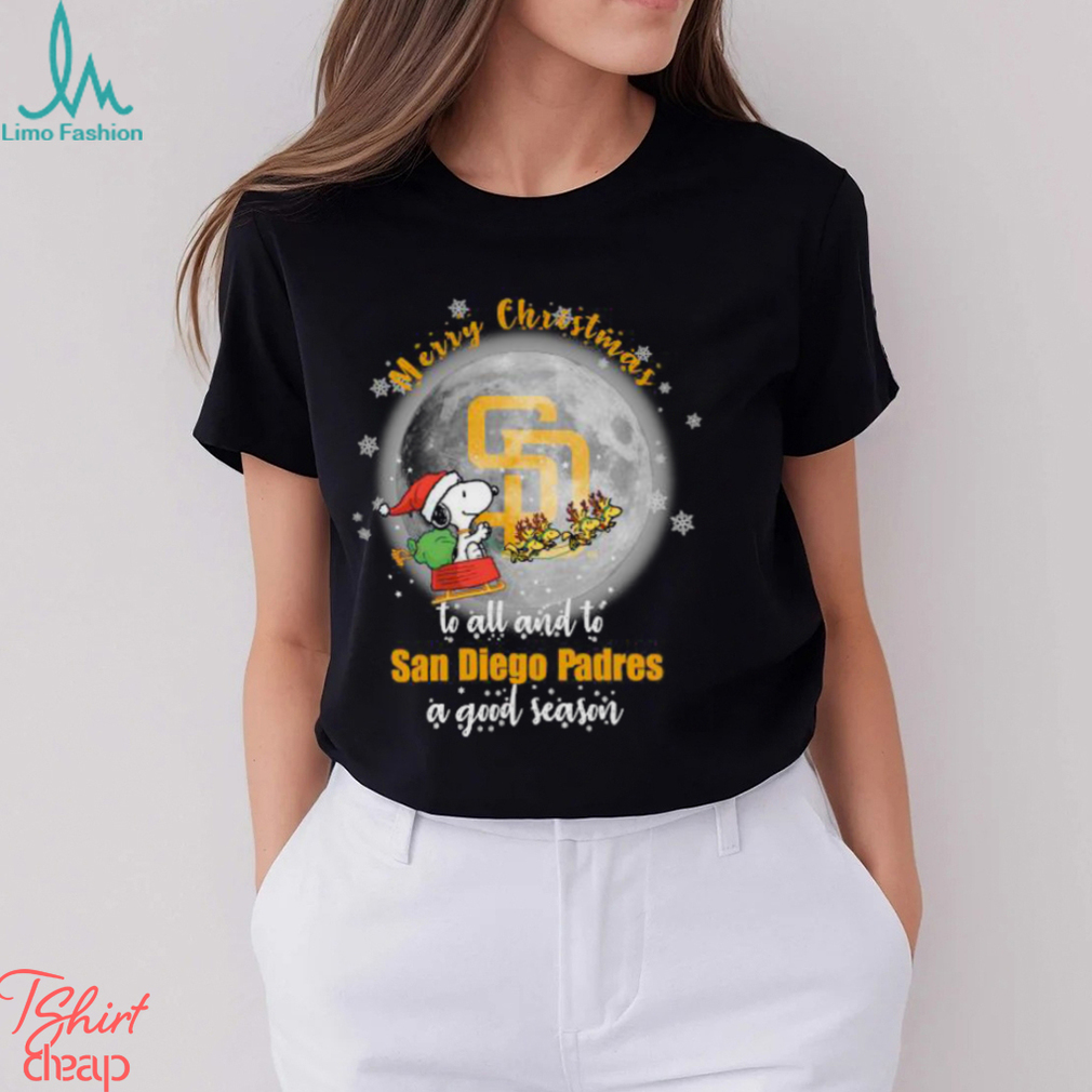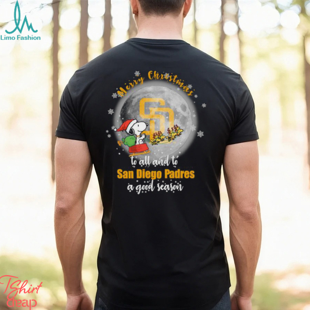 ()Santa Snoopy merry christmas to all and to San Diego Padres a good season shirt hoodie, tank top, sweater and long sleeve t-shirt