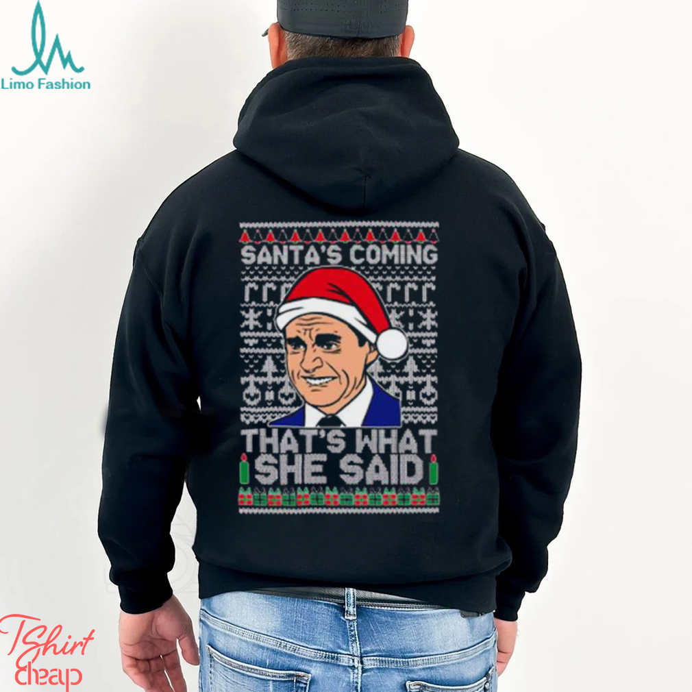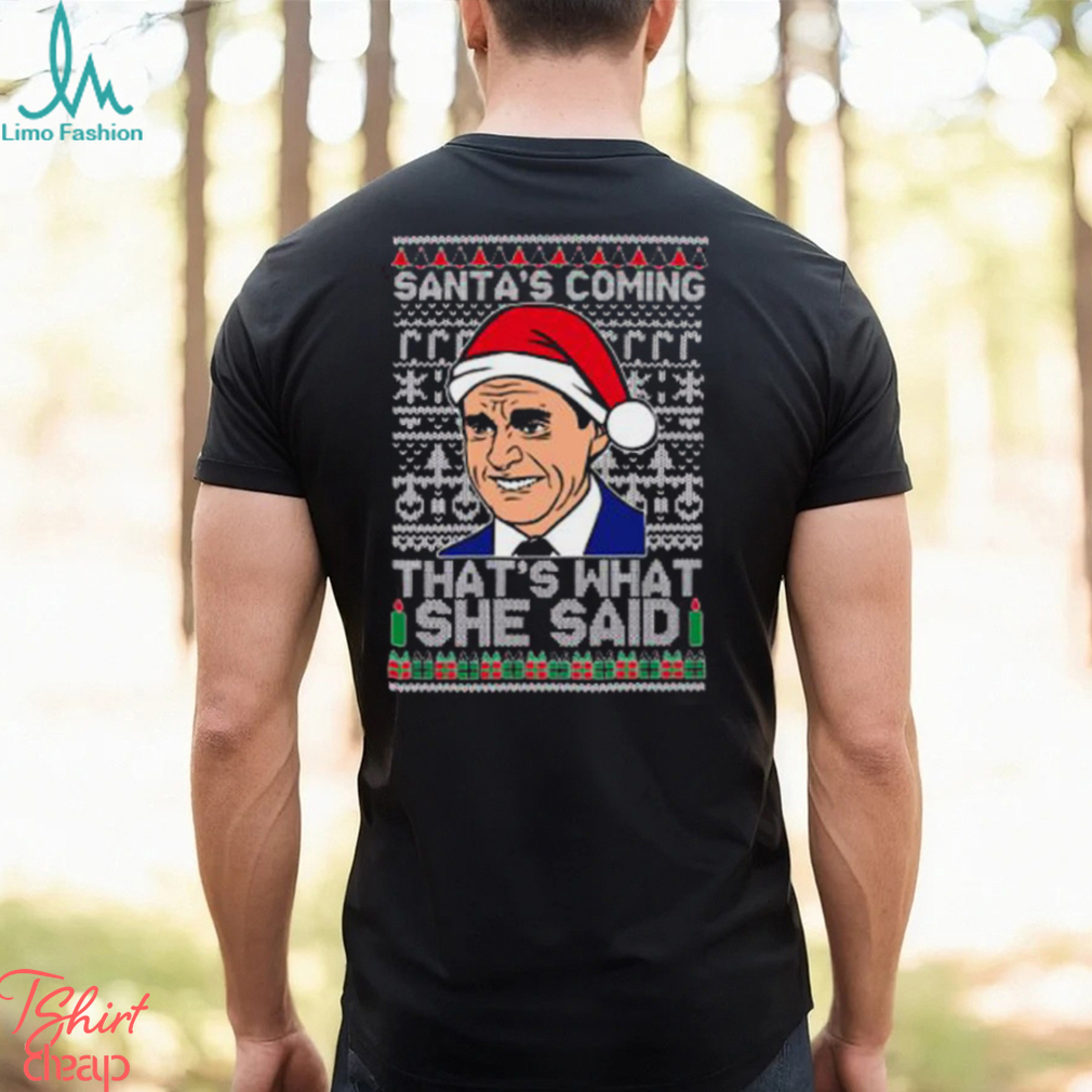 Santas Coming, That’s What She Said! Michael Scott Ugly Christmas Shirt hoodie, tank top, sweater and long sleeve t-shirt