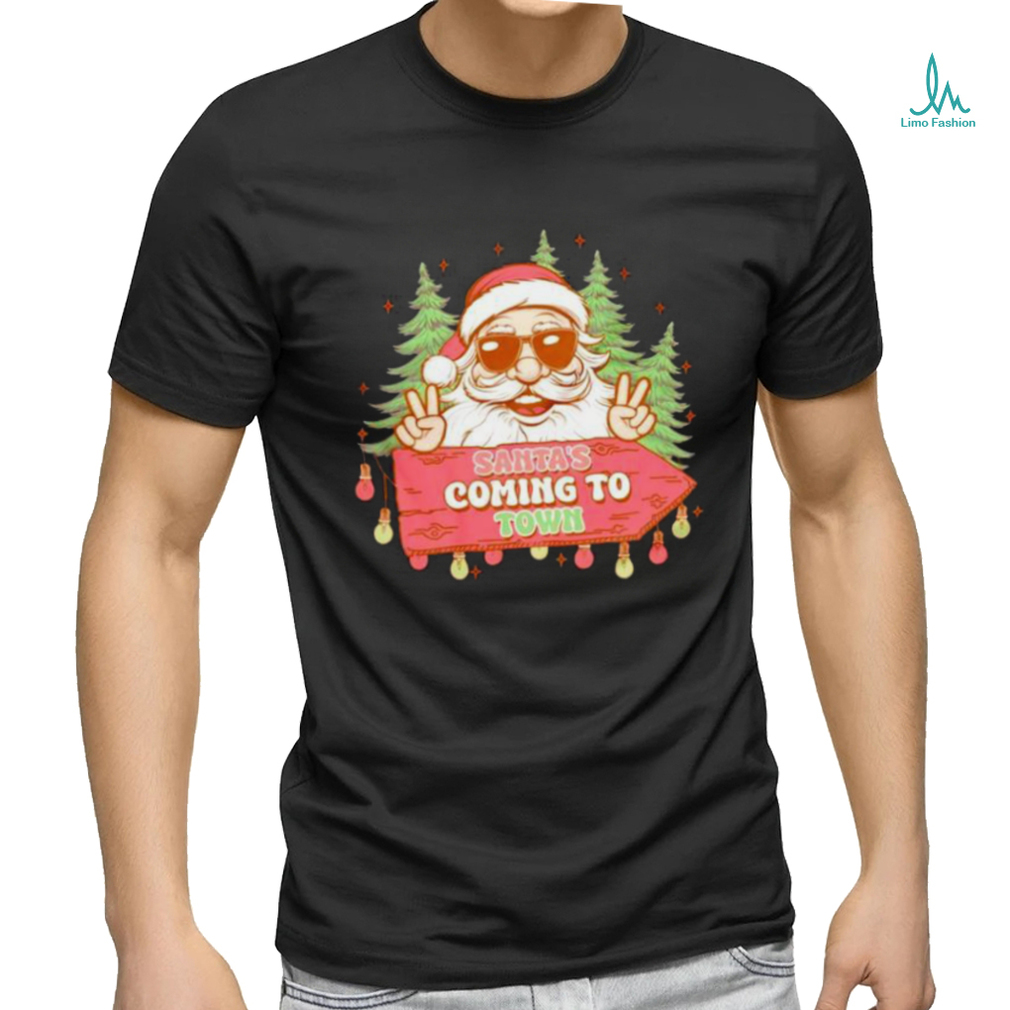 Santa’s Coming To Town Funny Christmas Shirt1 is a must-have for any Funny who loves all things teejeep. These shirts typically feature popular Trenđing Shirt characters, quotes, or logos, and come in a range of styles and colors to suit any taste. Some designs may even feature the dad’s favorite Trending or characters, making them a personalized and thoughtful gift.